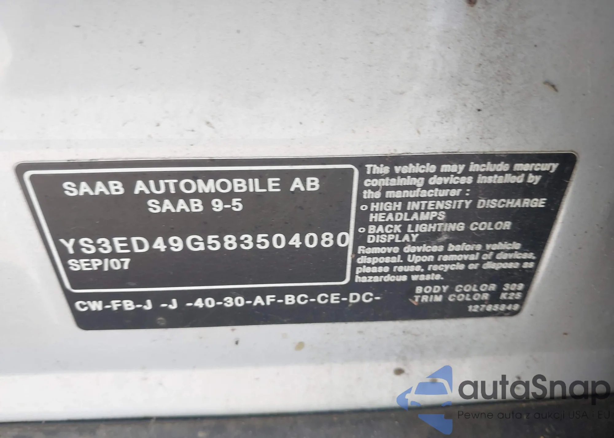 • VIN 1N4BL4DV8SN383291