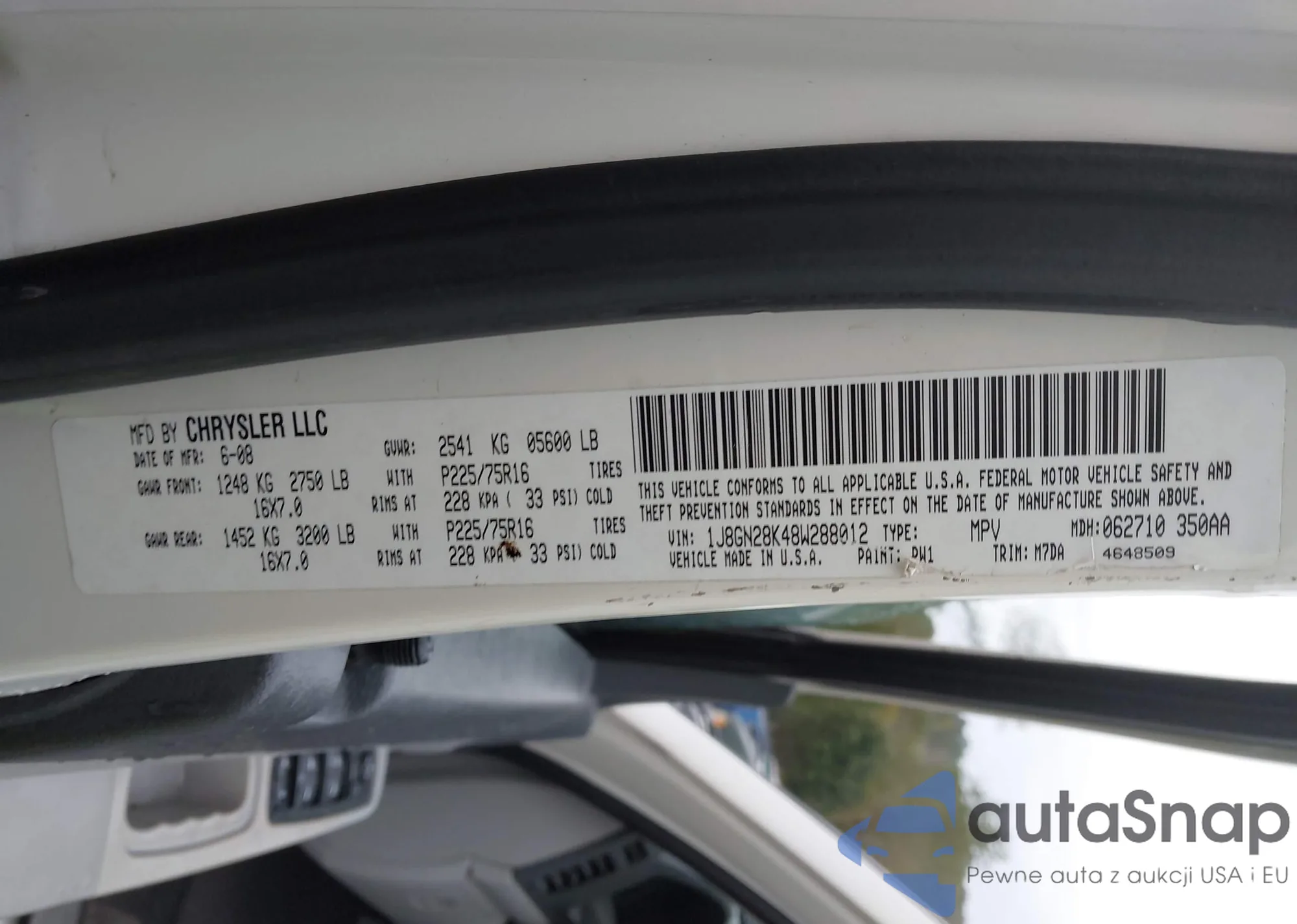 LOT: 43378059 VIN: 1J8GN28K48W288012