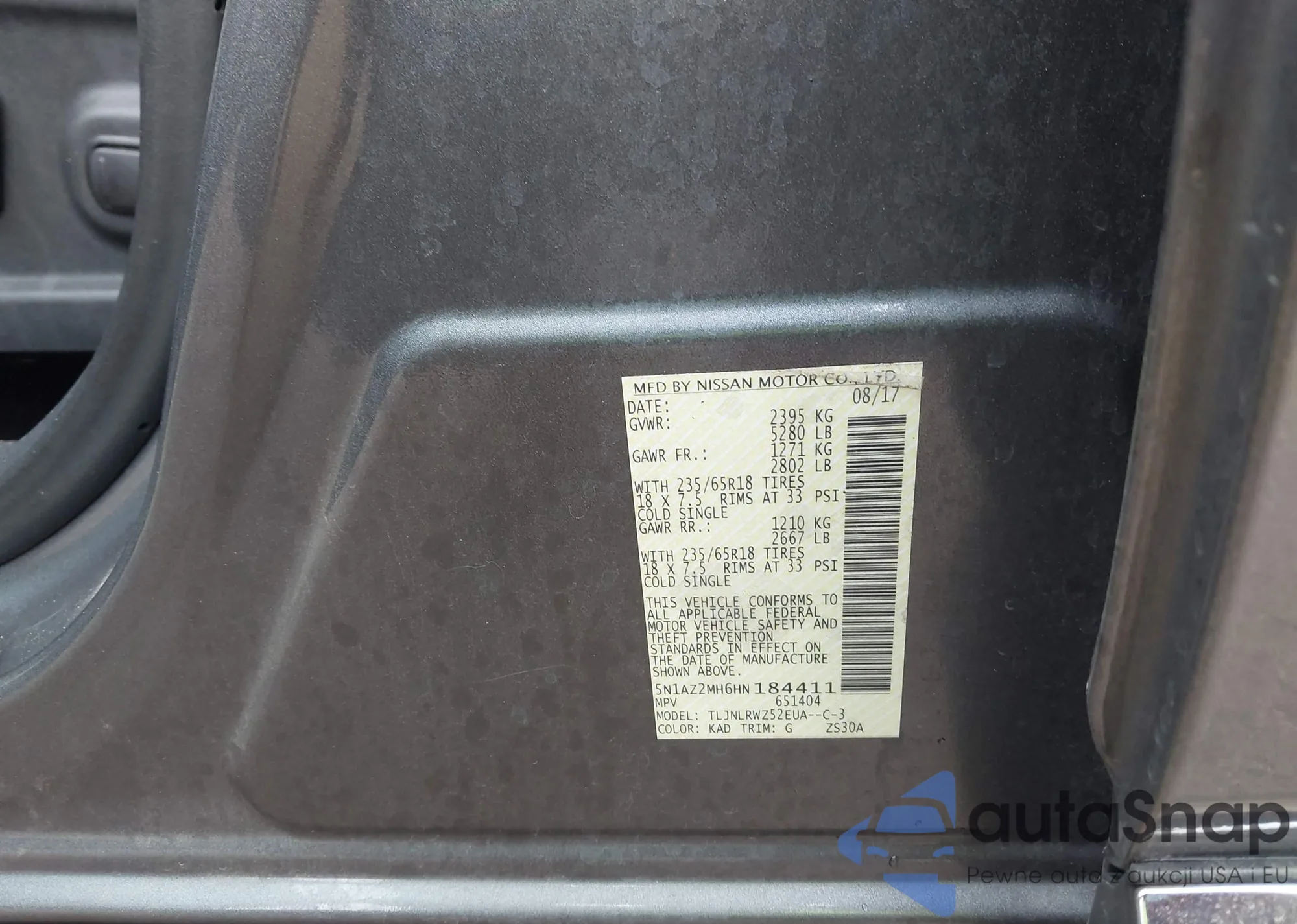 LOT: 42980938 VIN: 5N1AZ2MH6HN184411