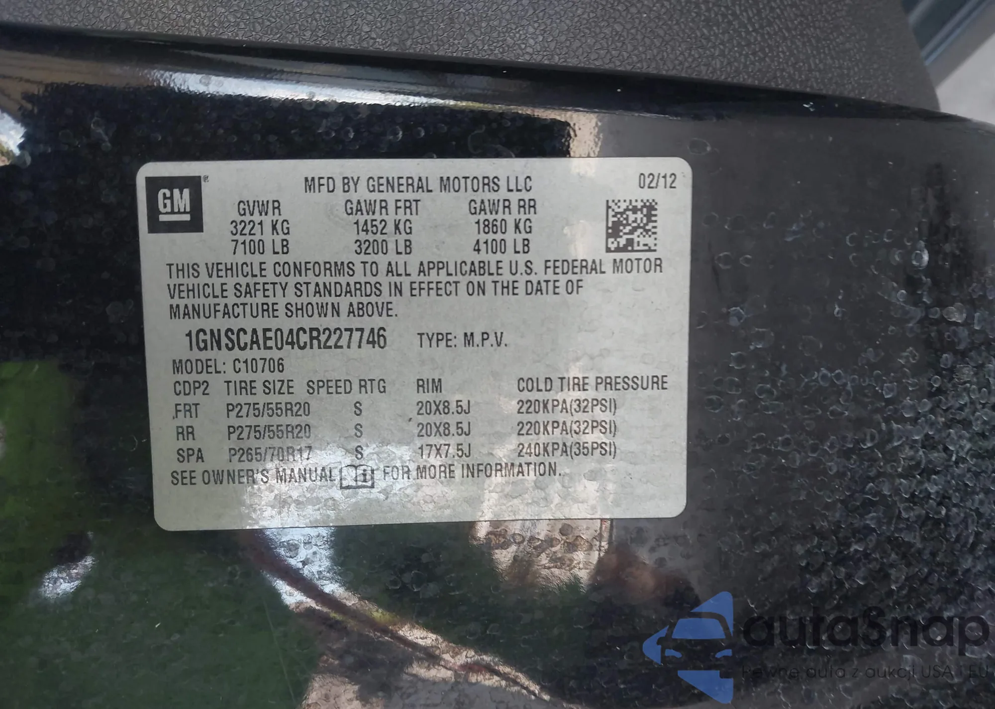 LOT: 43339496 VIN: 4T1BF1FKXCU578380