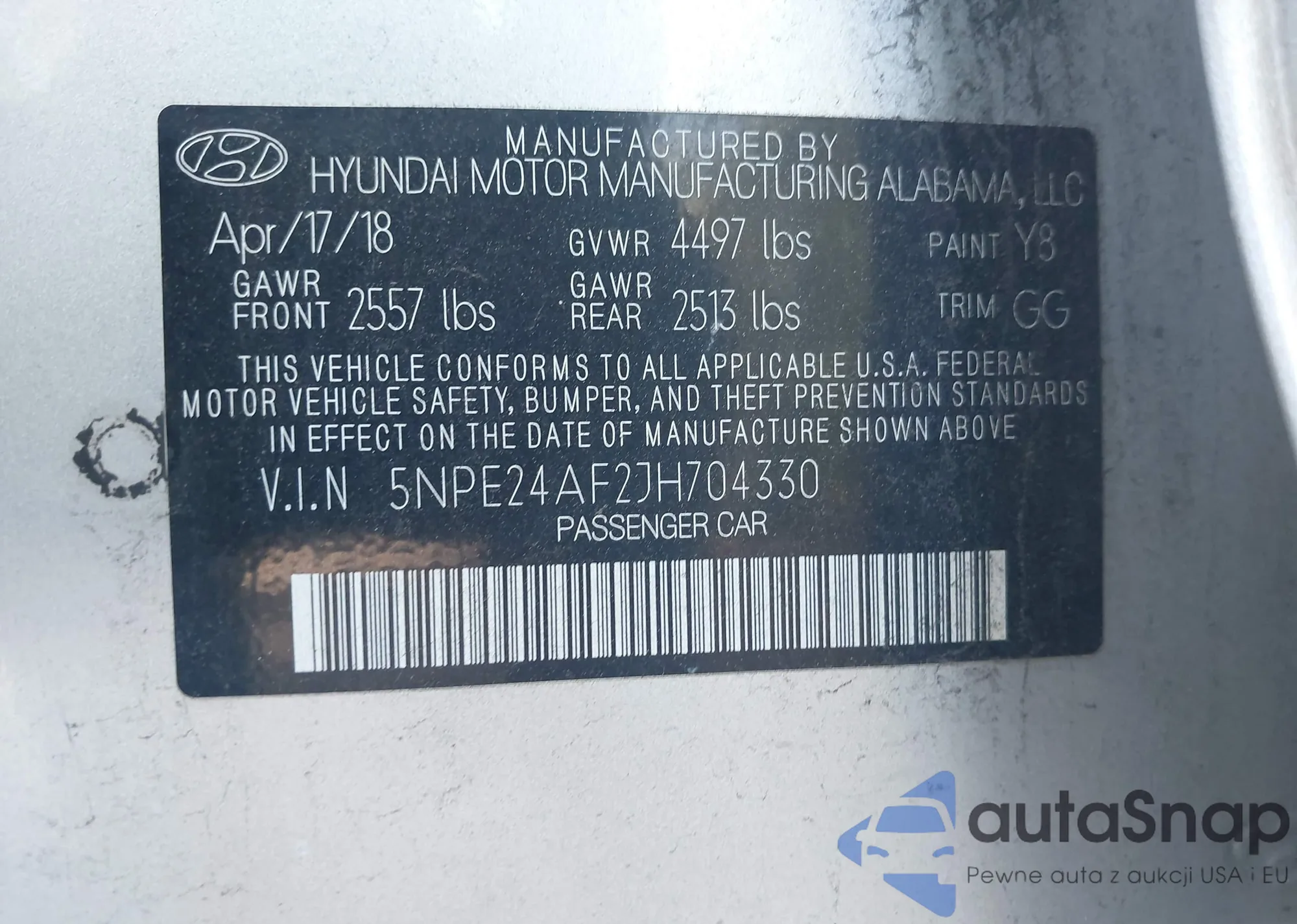 LOT: 43300185 VIN: 5NPDH4AE8DH446000