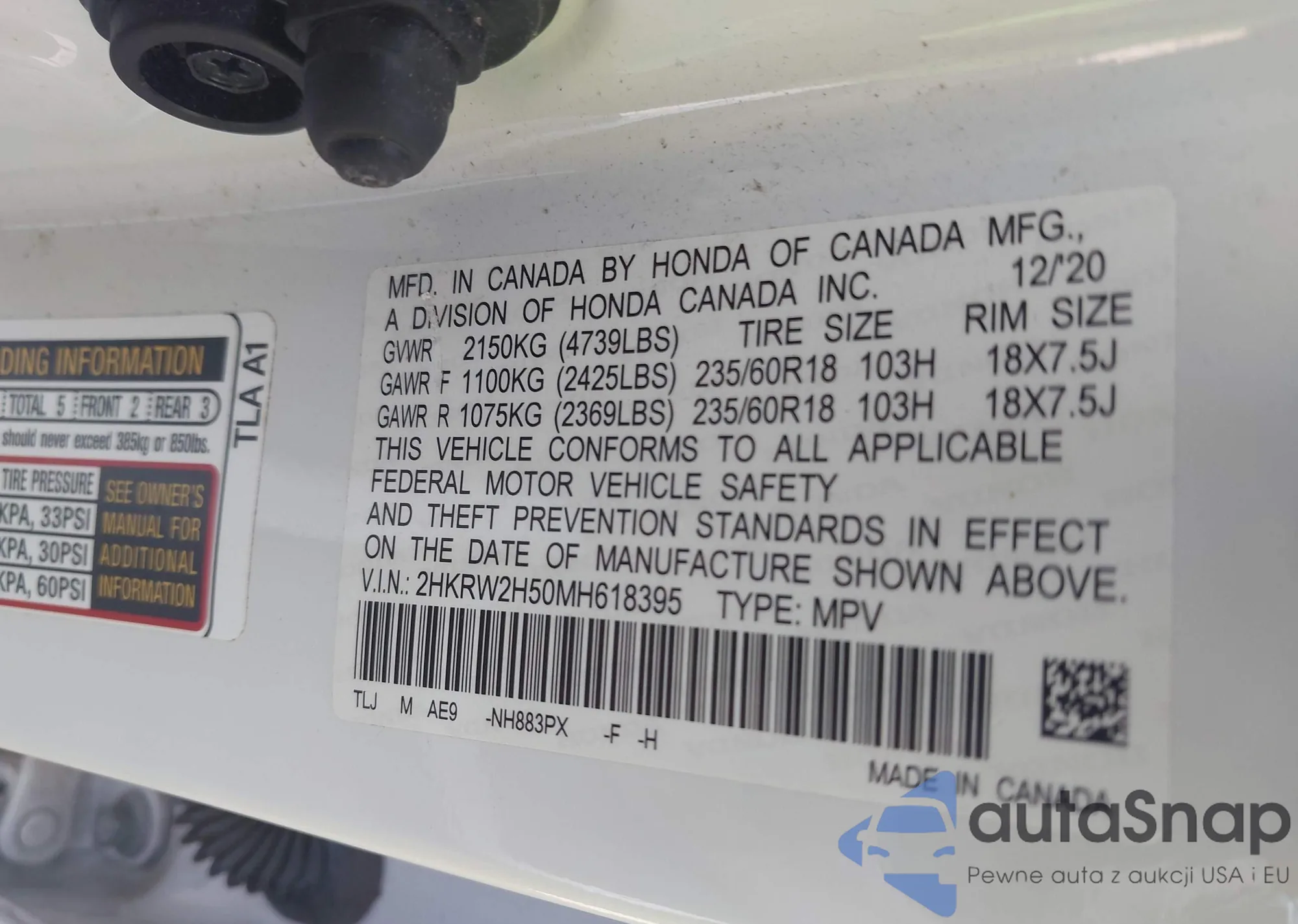 • VIN 2HKRW2H50MH618395