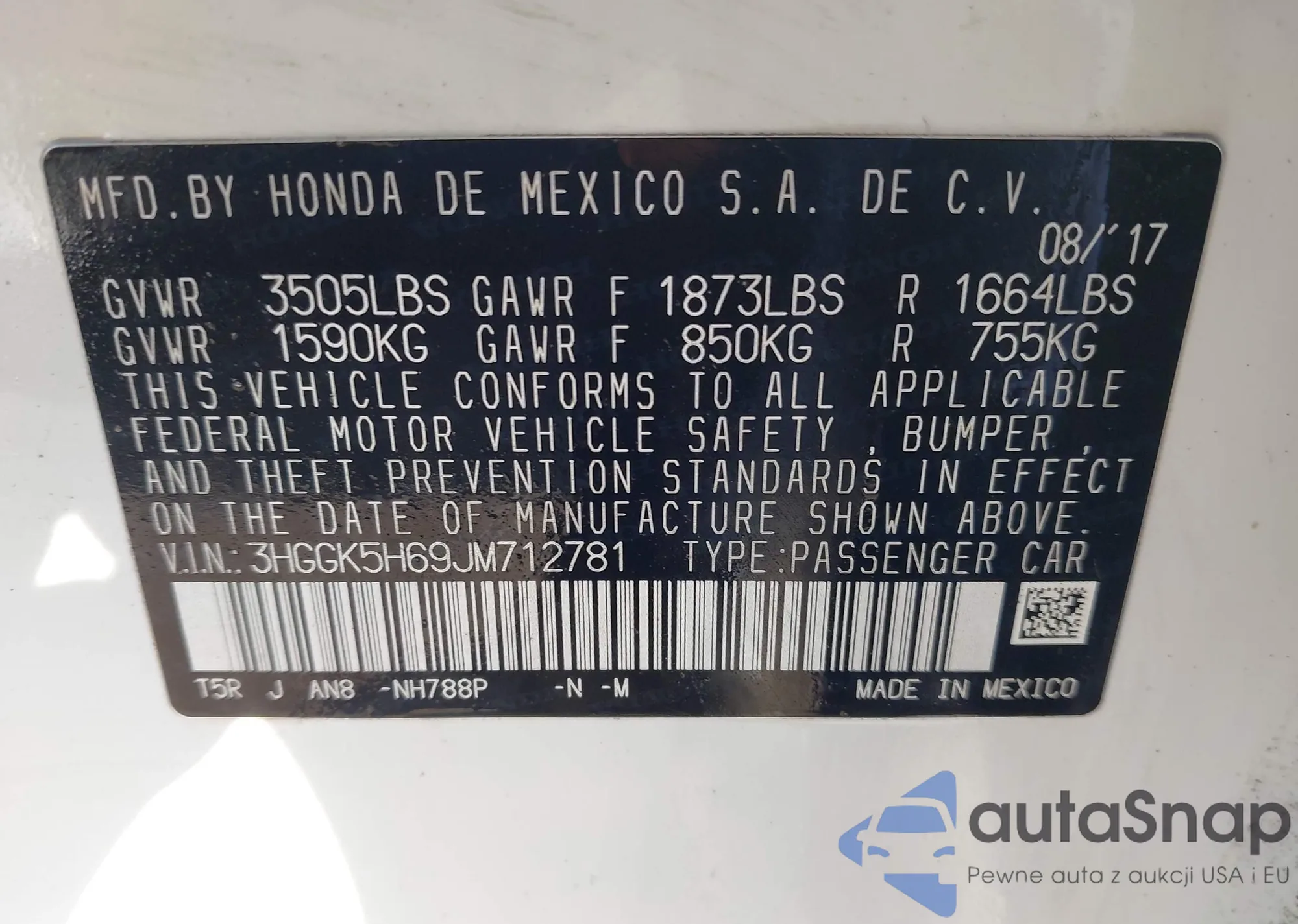 • VIN 3HGGK5H69JM712781