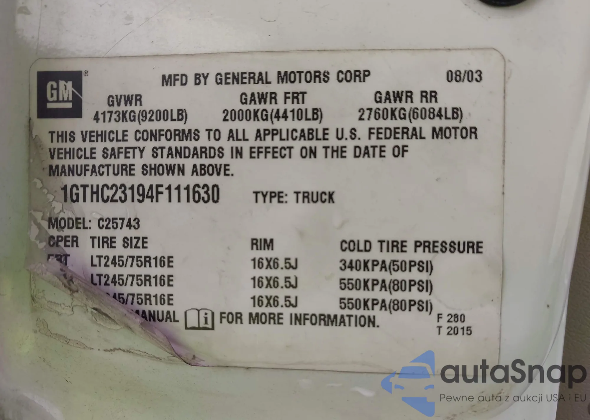 LOT: 43214905 VIN: 1GTHC23194F111630
