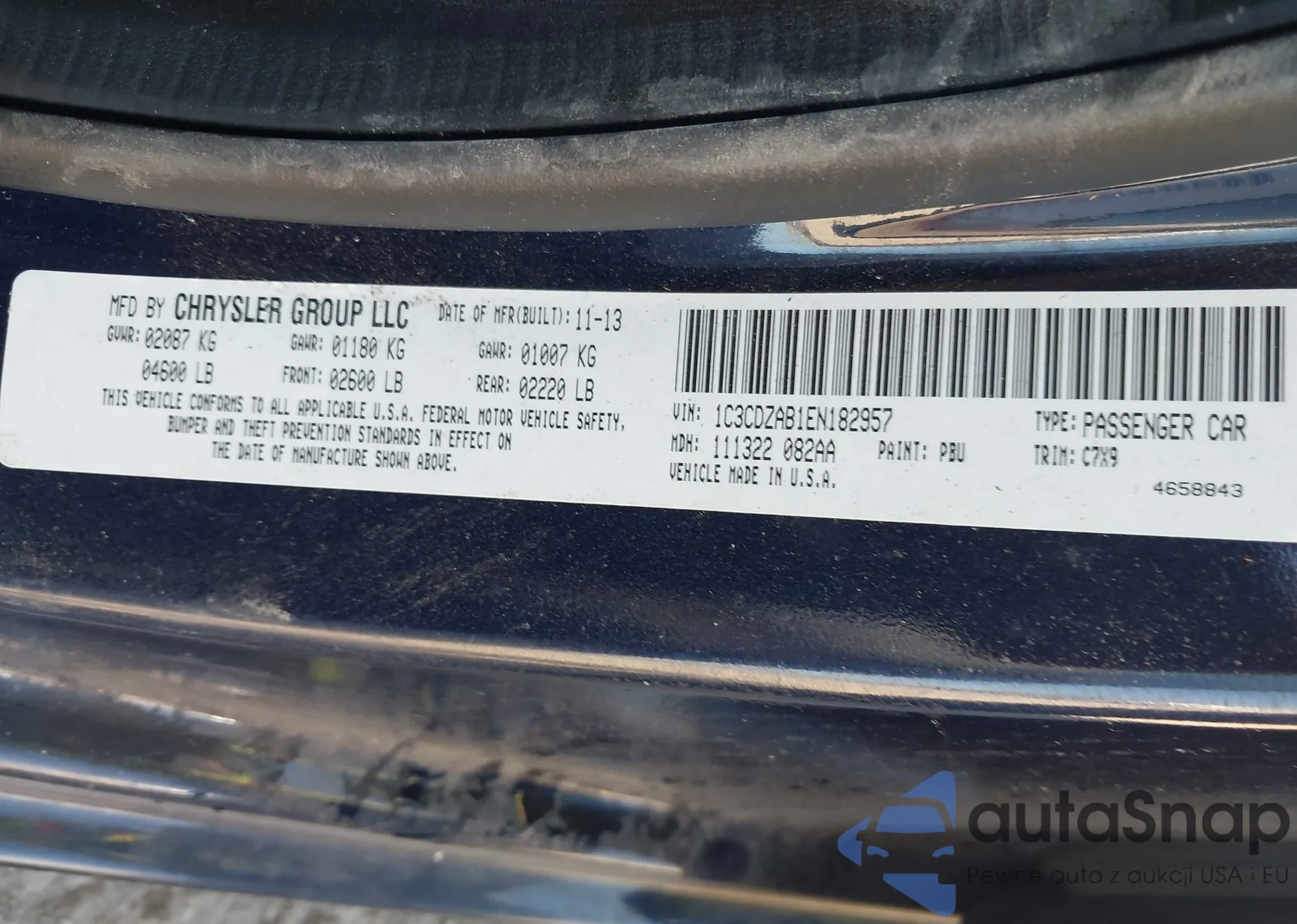 • VIN 1N4AL3AP8DC225771