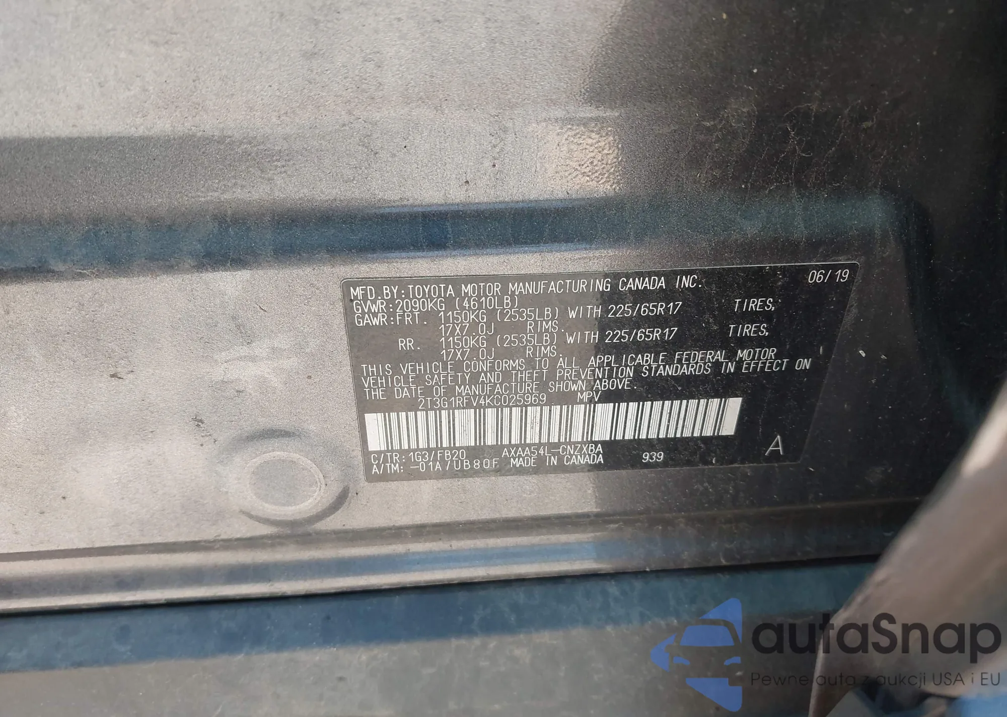 • VIN 2T3G1RFV4KC025969
