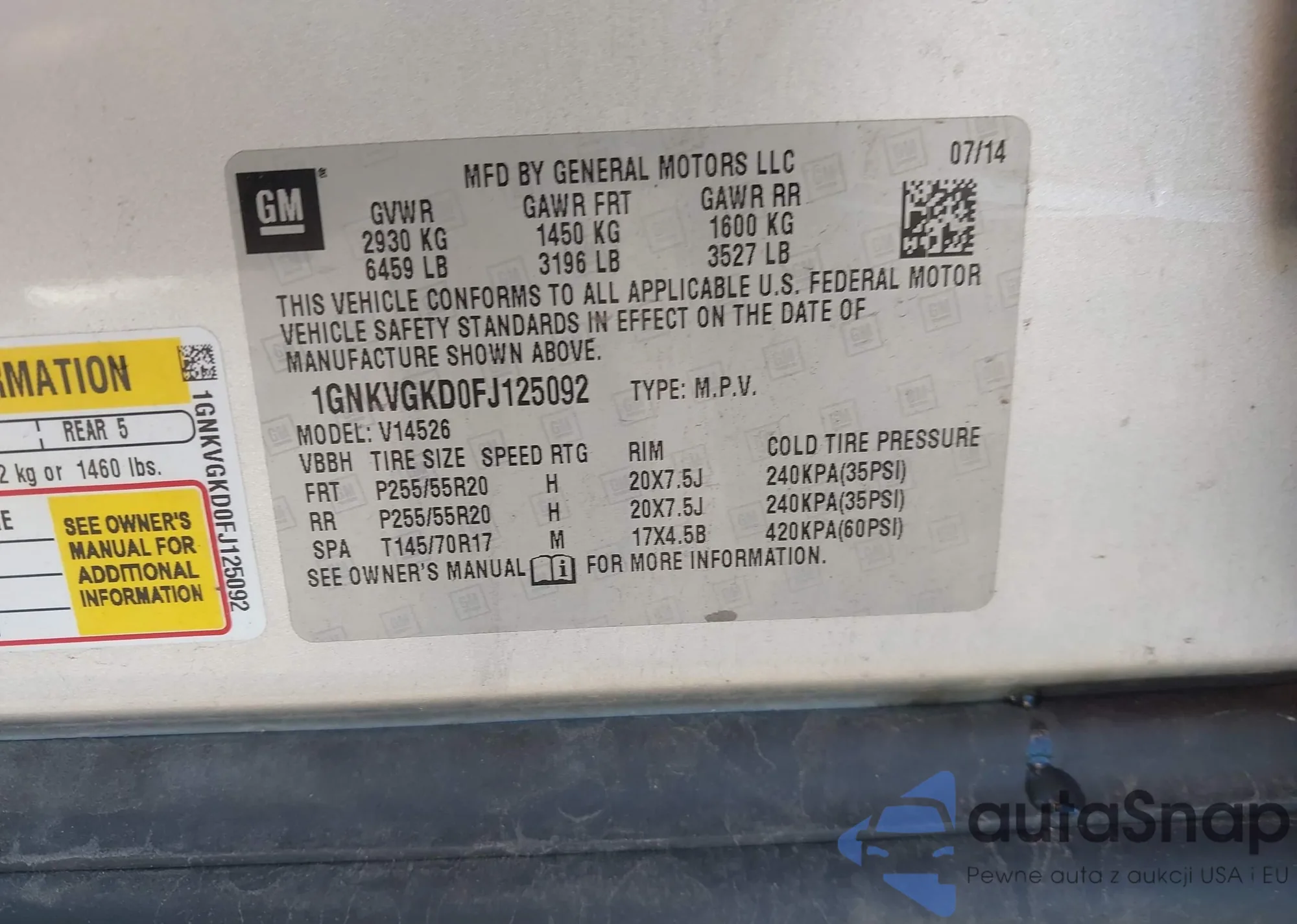 LOT: 43049384 VIN: 5TDYK3DC4FS531226