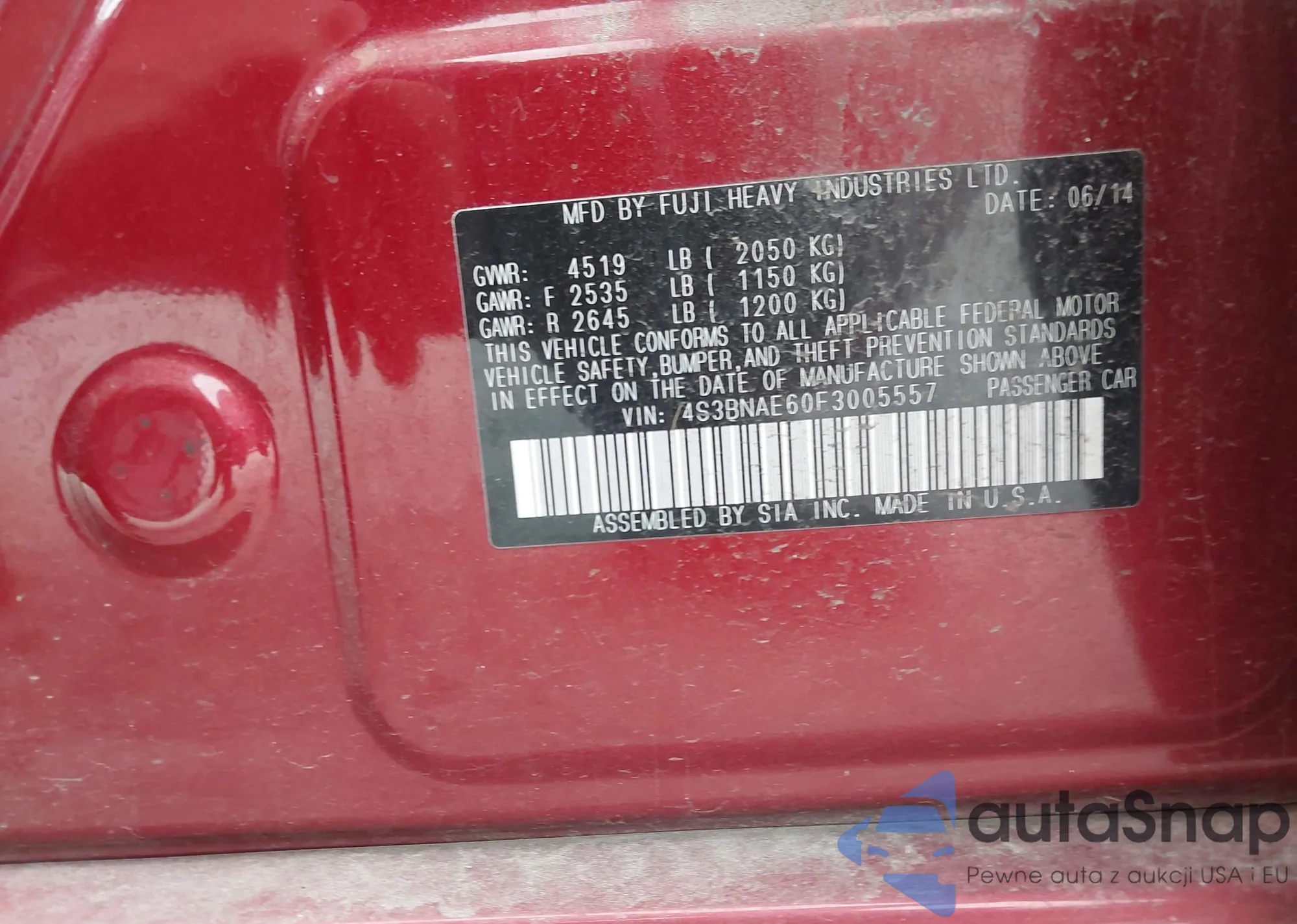• VIN 4S3BNAE60F3005557