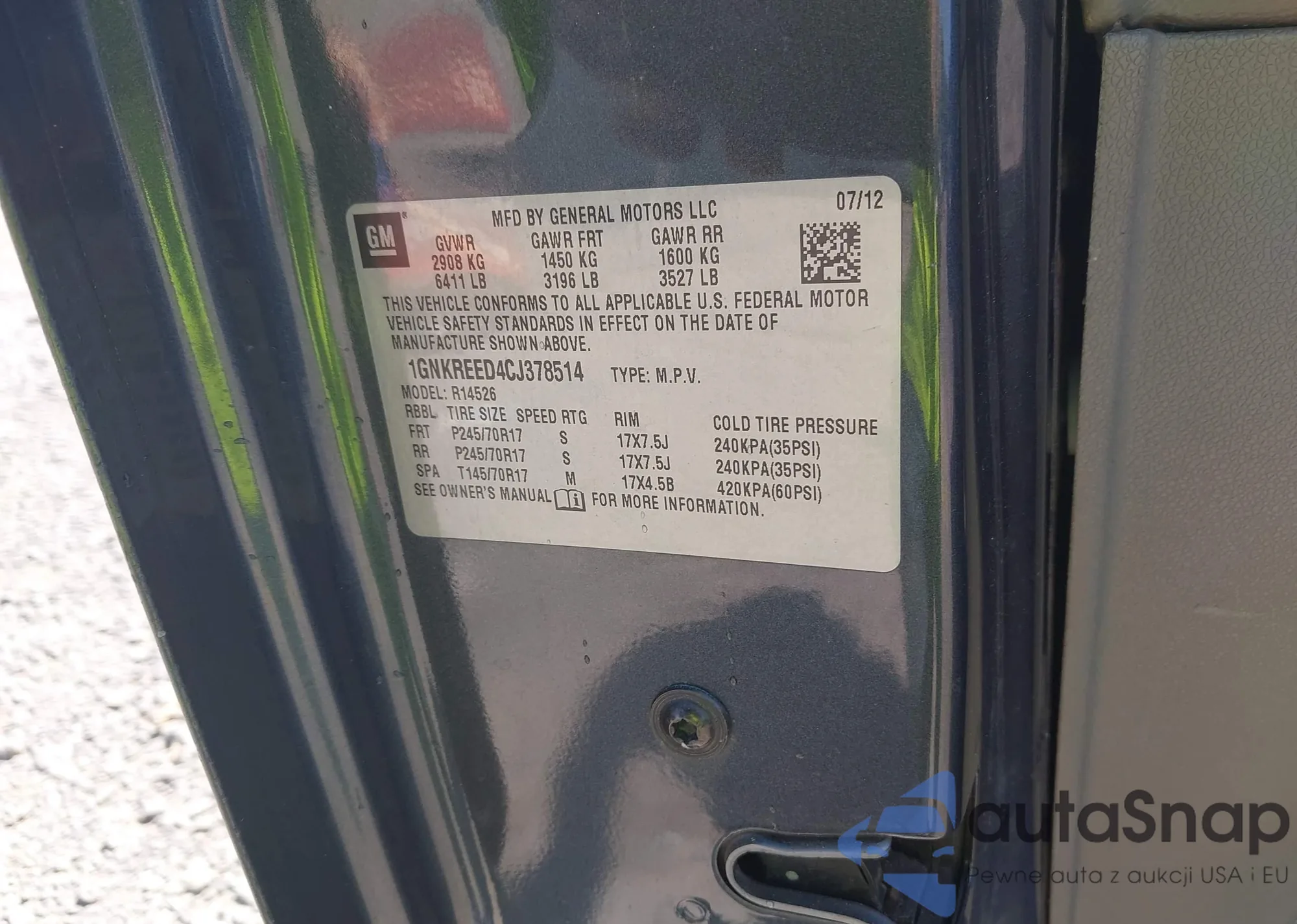 LOT: 43121883 VIN: 1GNKRFED2FJ227004