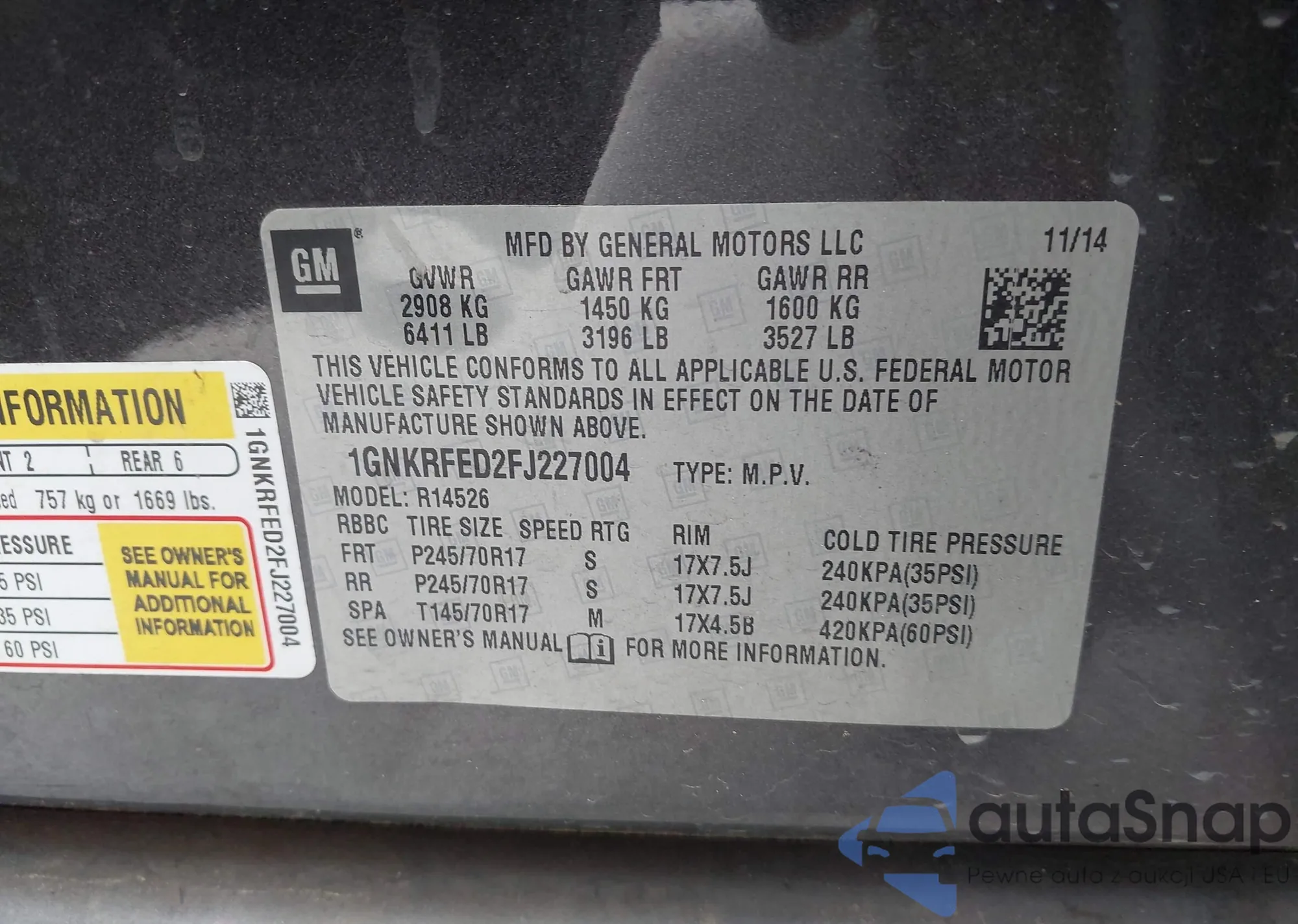 • VIN 1GNKRFED2FJ227004