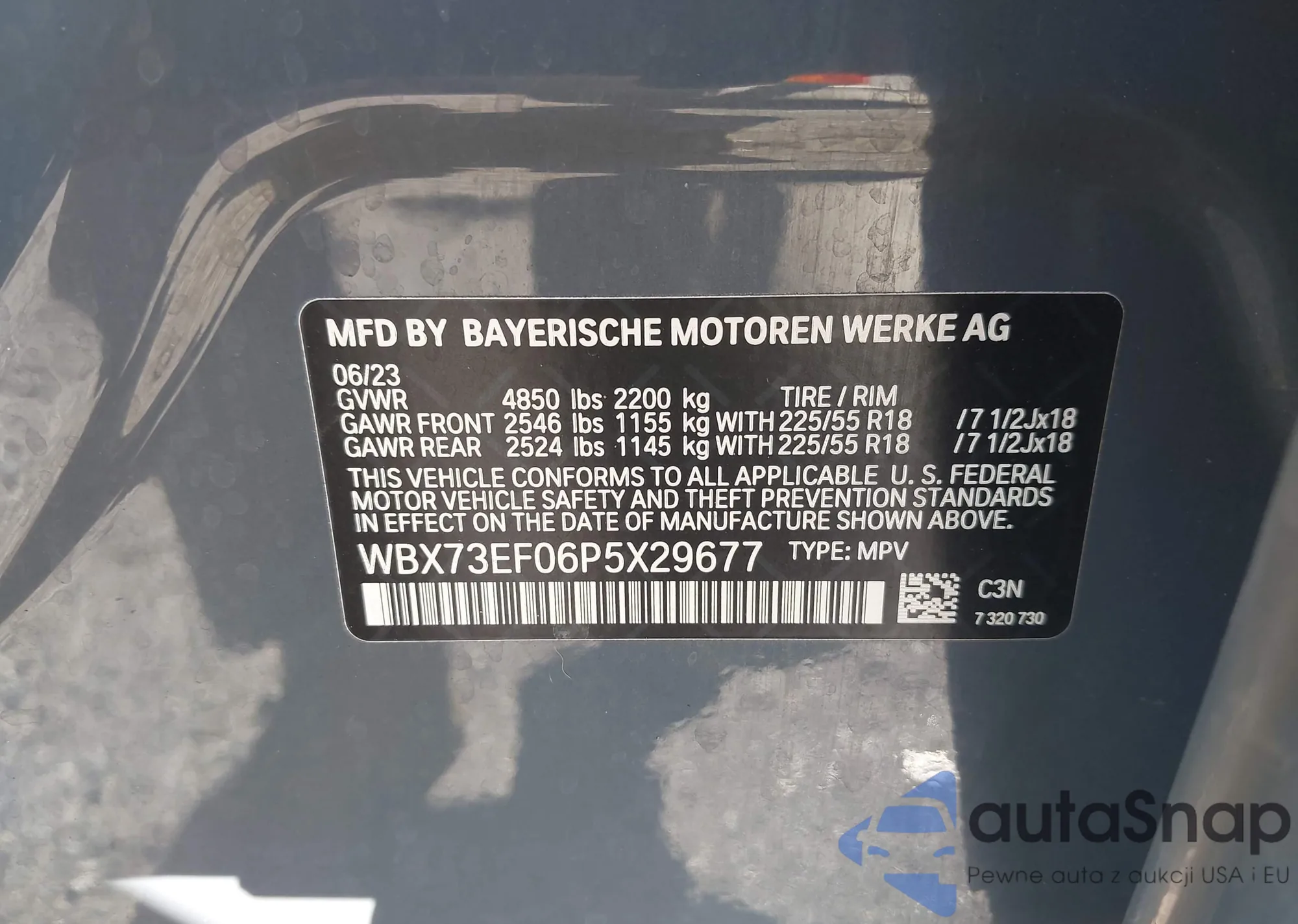 LOT: 43161005 VIN: WBX73EF0XP5X50287