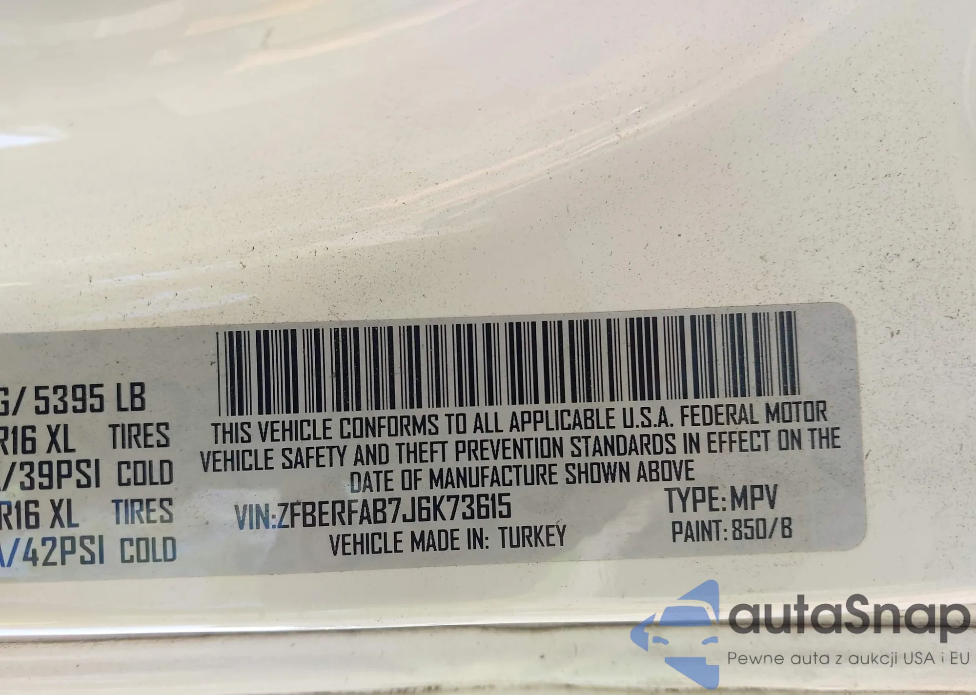 LOT: 43184840 VIN: ZACCJBBB8JPH63173
