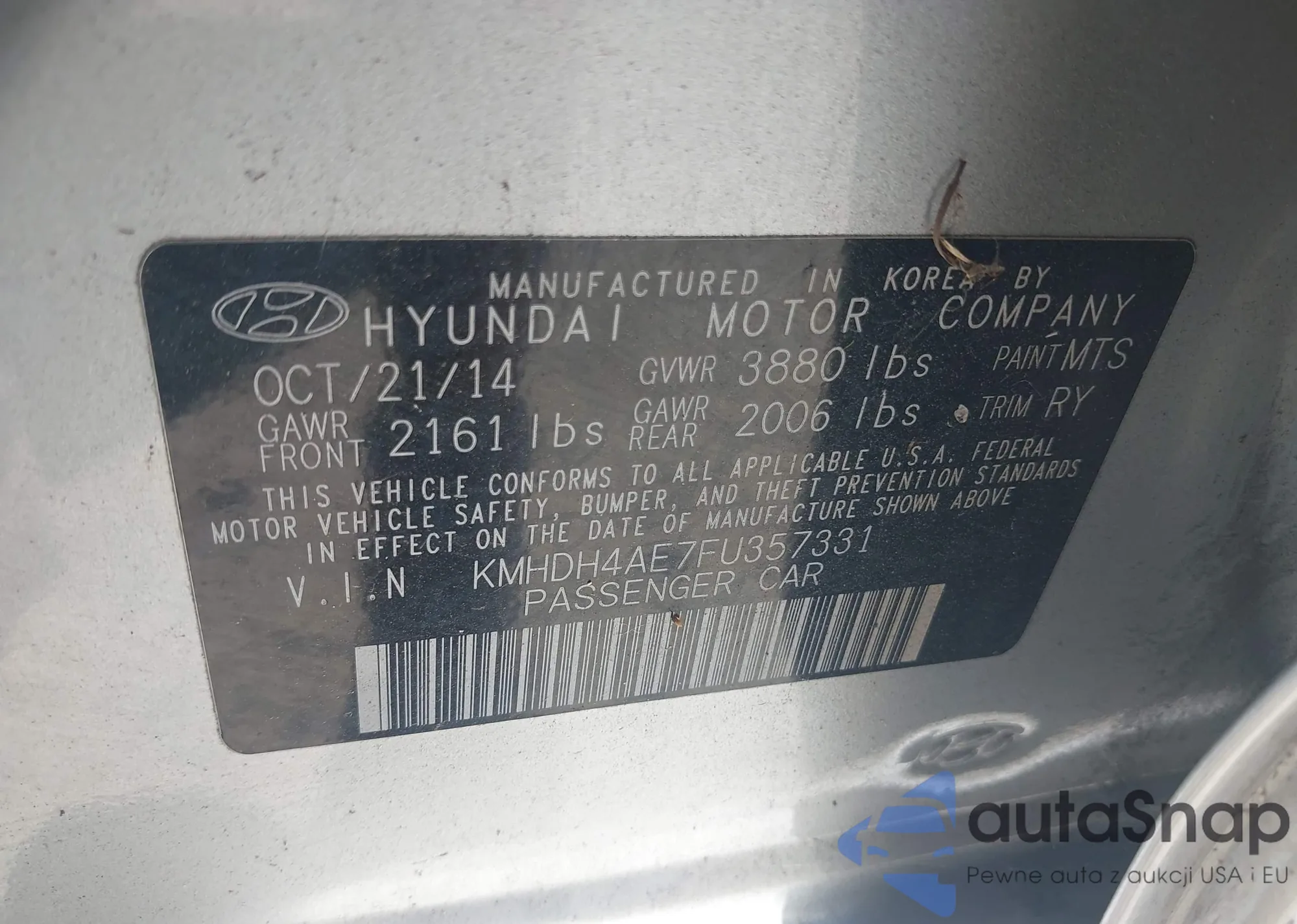 • VIN KMHDH4AE7FU357331