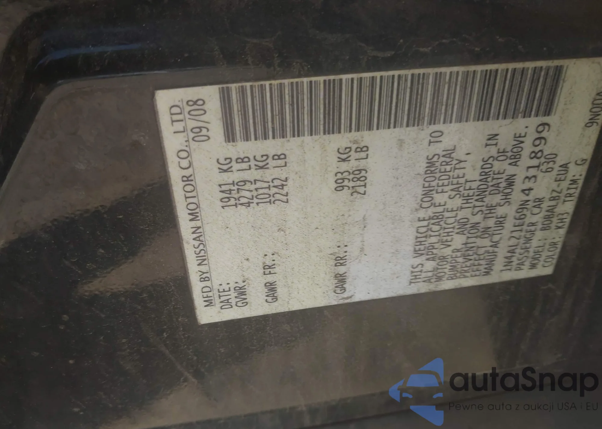 • VIN 4S4WMAJD7K3443118