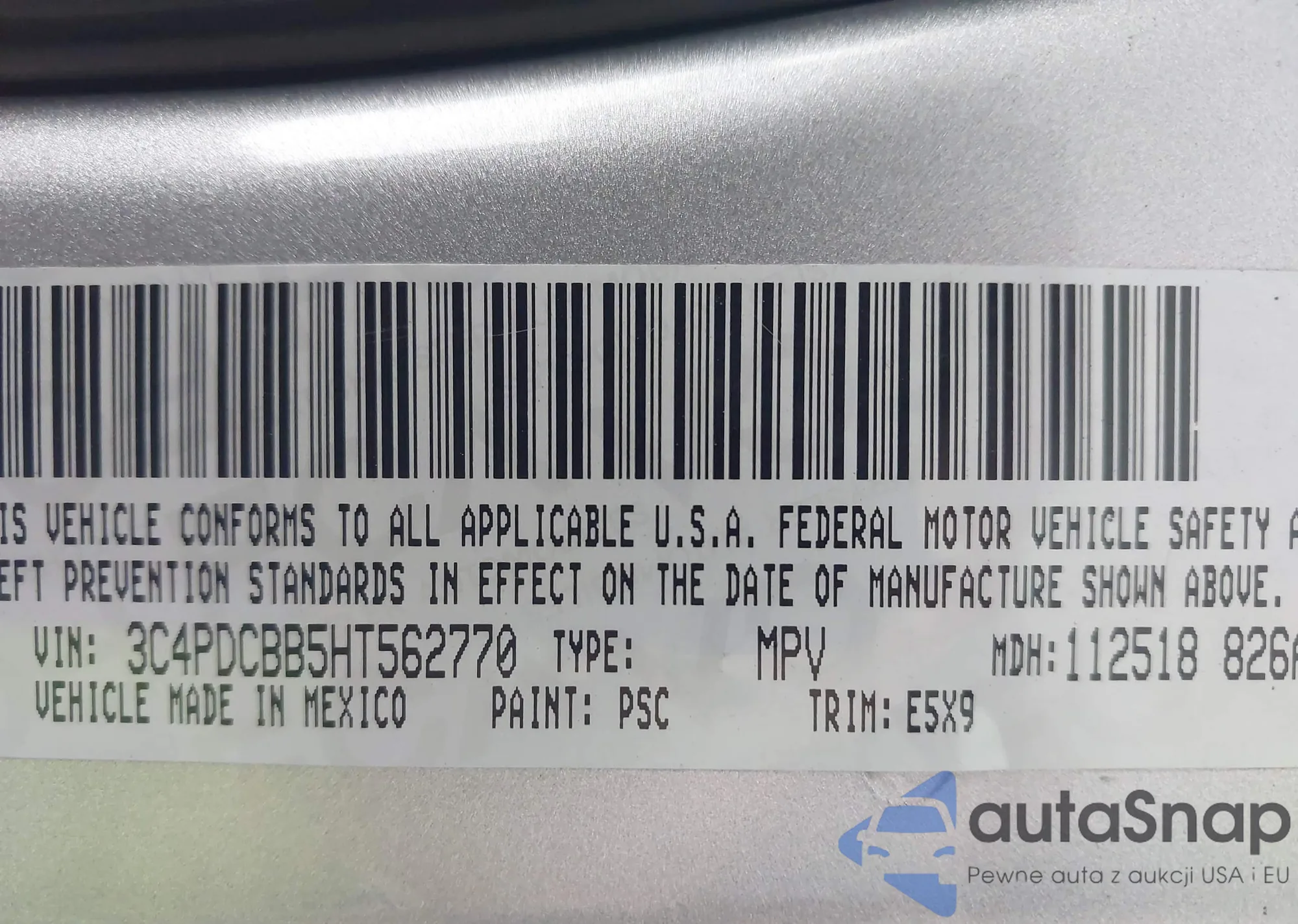 • VIN 5J8TC2H63SL005270