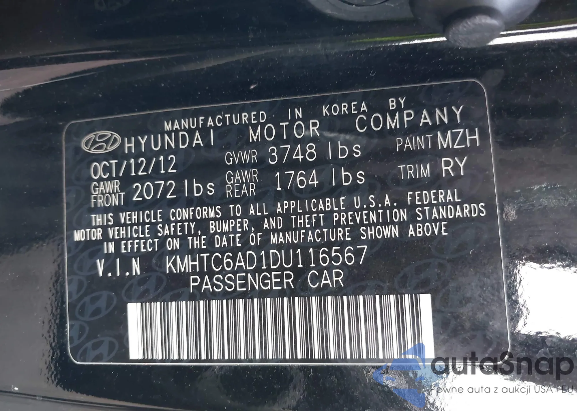 LOT: 43273057 VIN: KMHTC6AD1DU116567