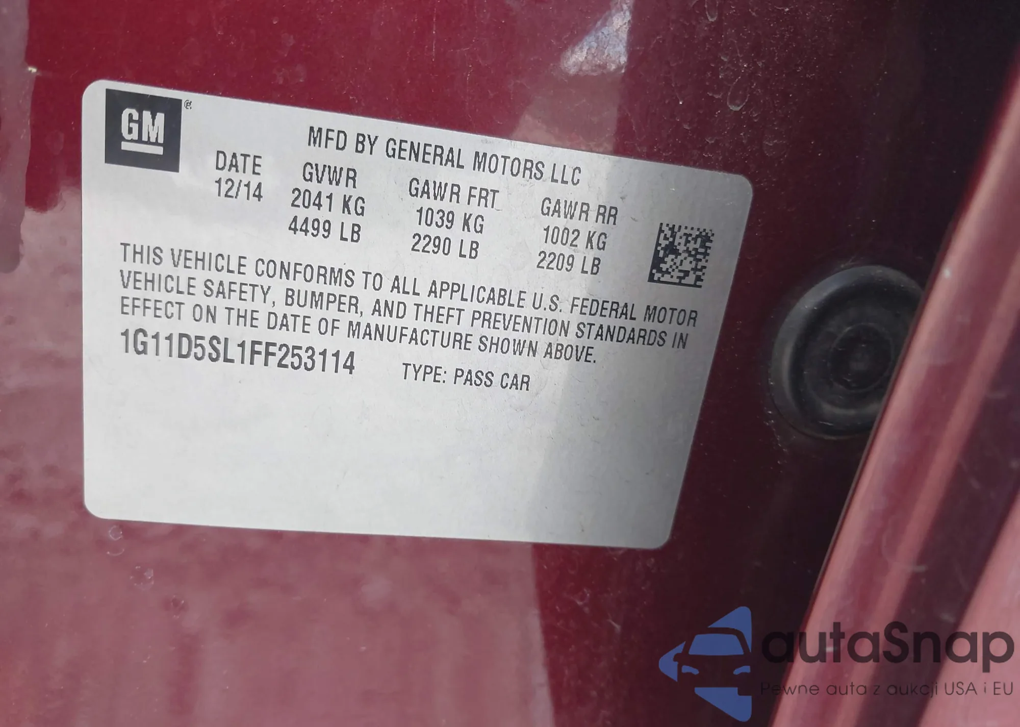 • VIN 1G11D5SL1FF253114