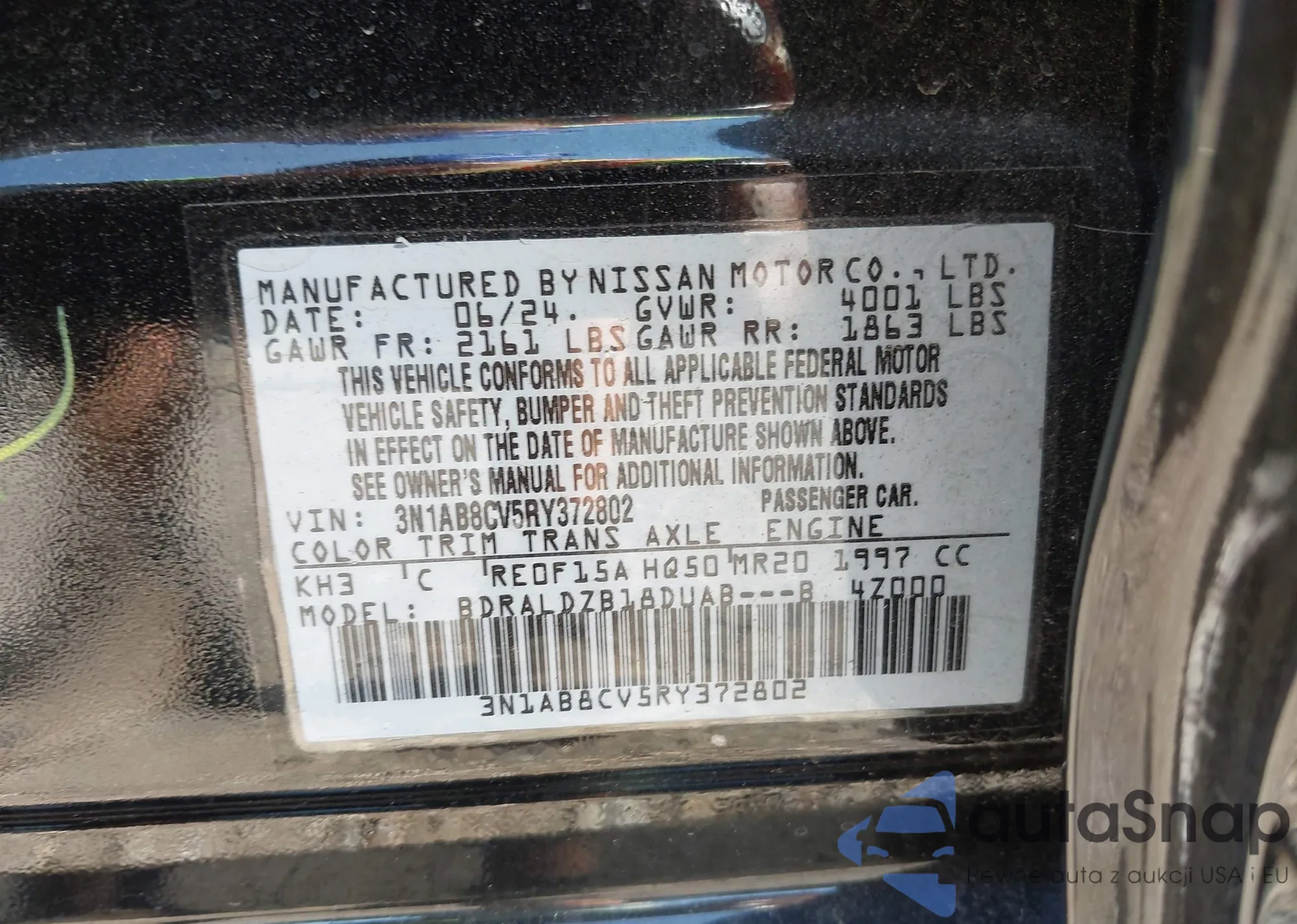 • VIN 3N1AB8CV5RY372802