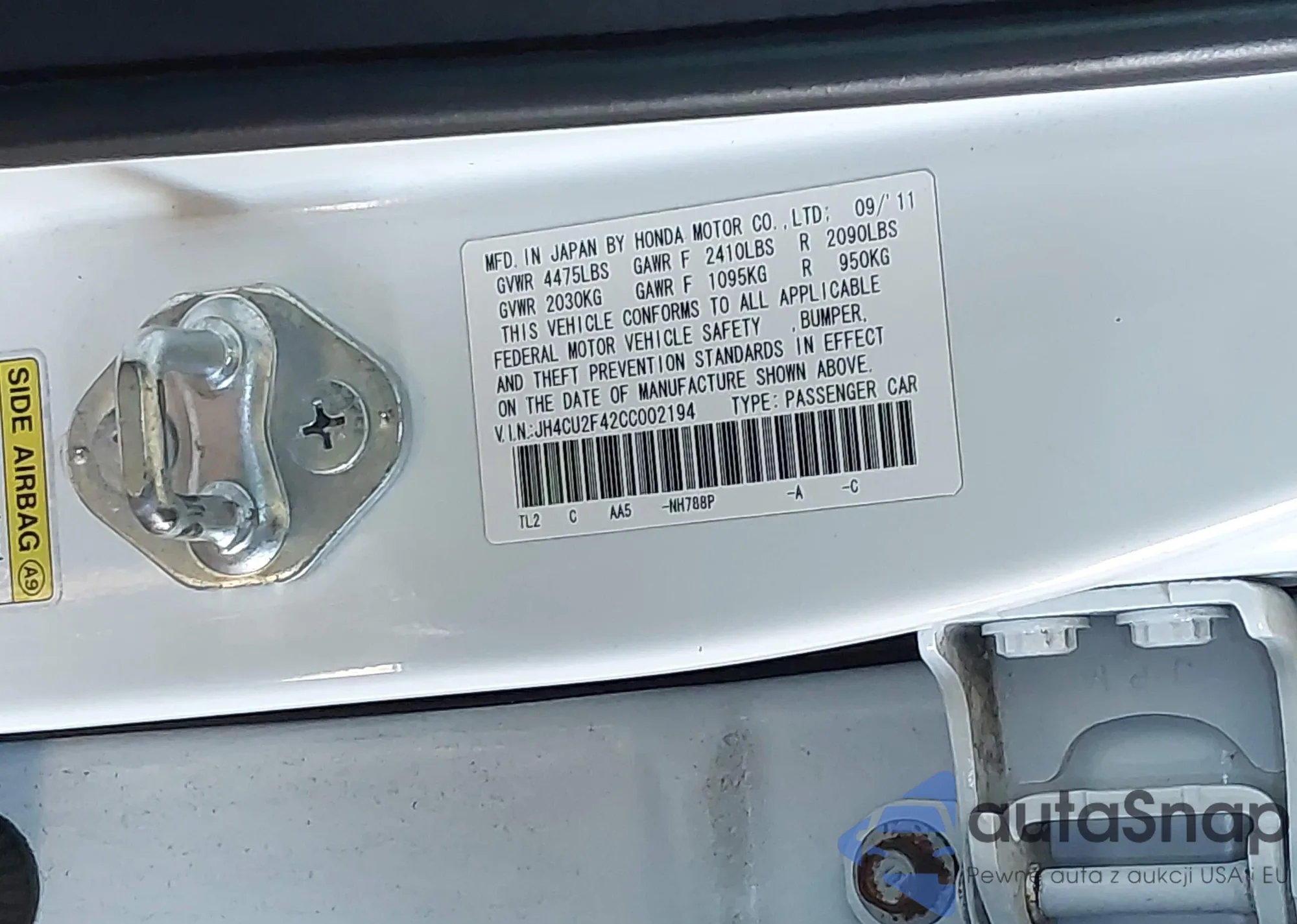 LOT: 42081296 VIN: JH4CU2F42CC002194