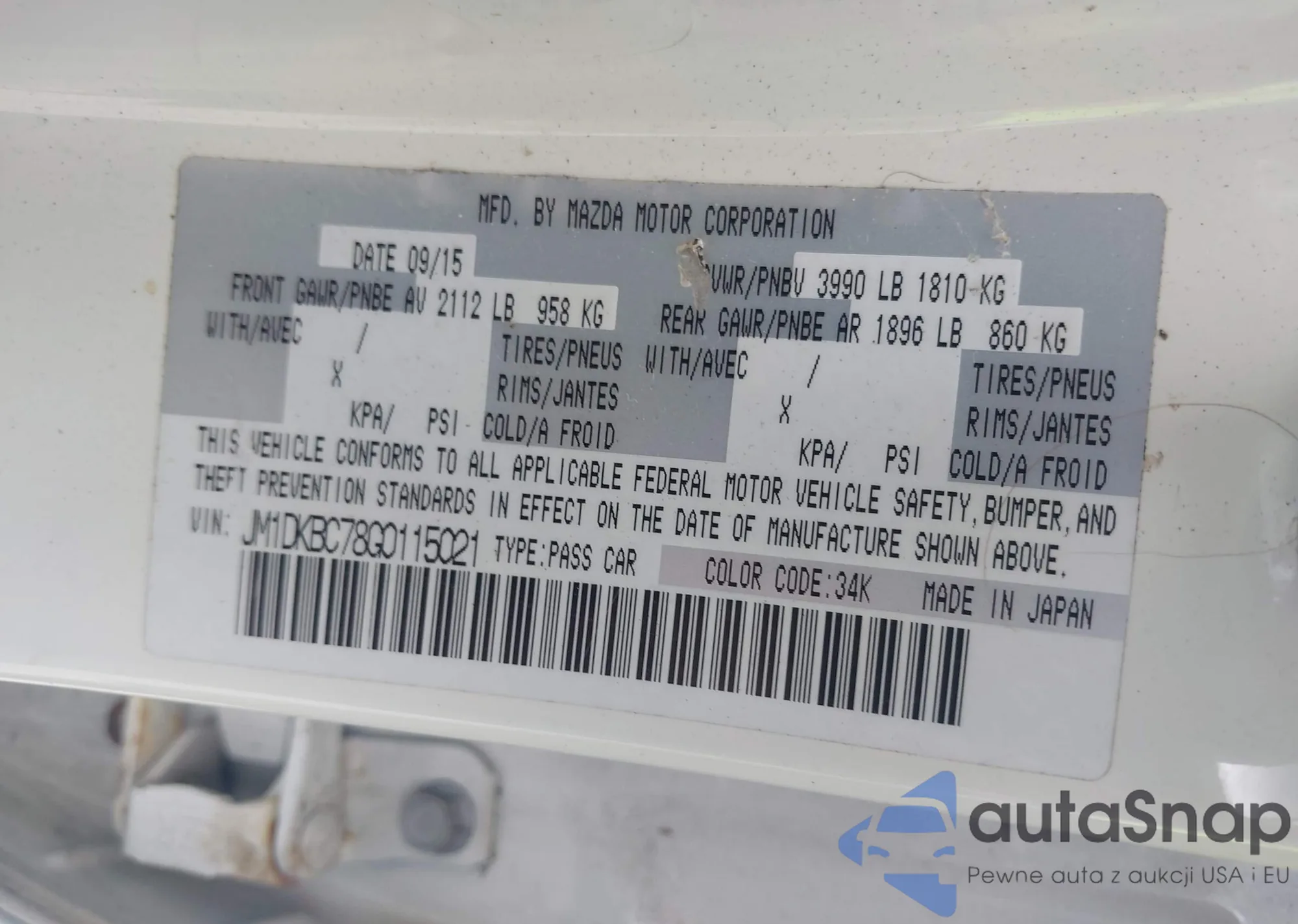 LOT: 43144734 VIN: JM1DKBC78G0115021