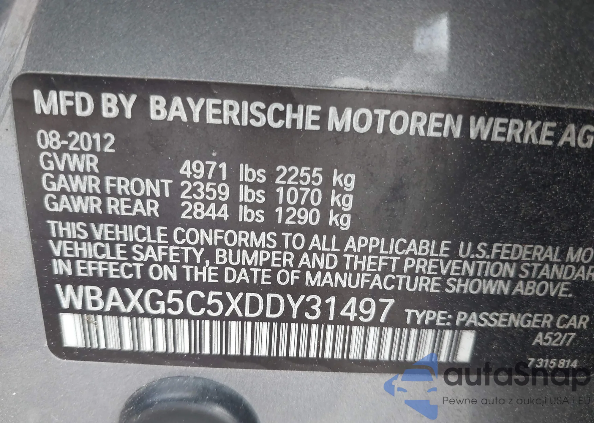 • VIN WBAXG5C5XDDY31497