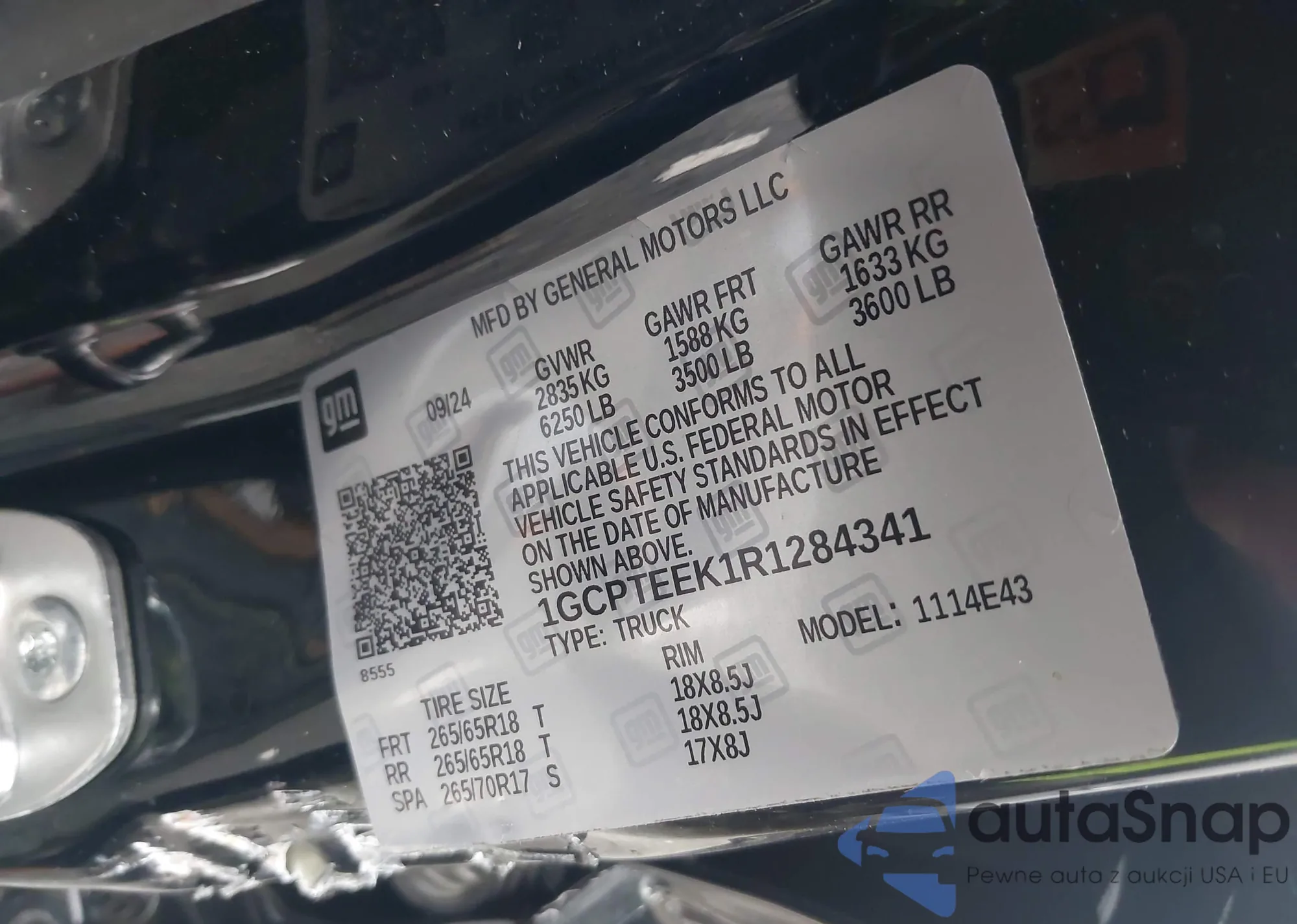 LOT: 42885496 VIN: 1GCPTEEK1R1284341