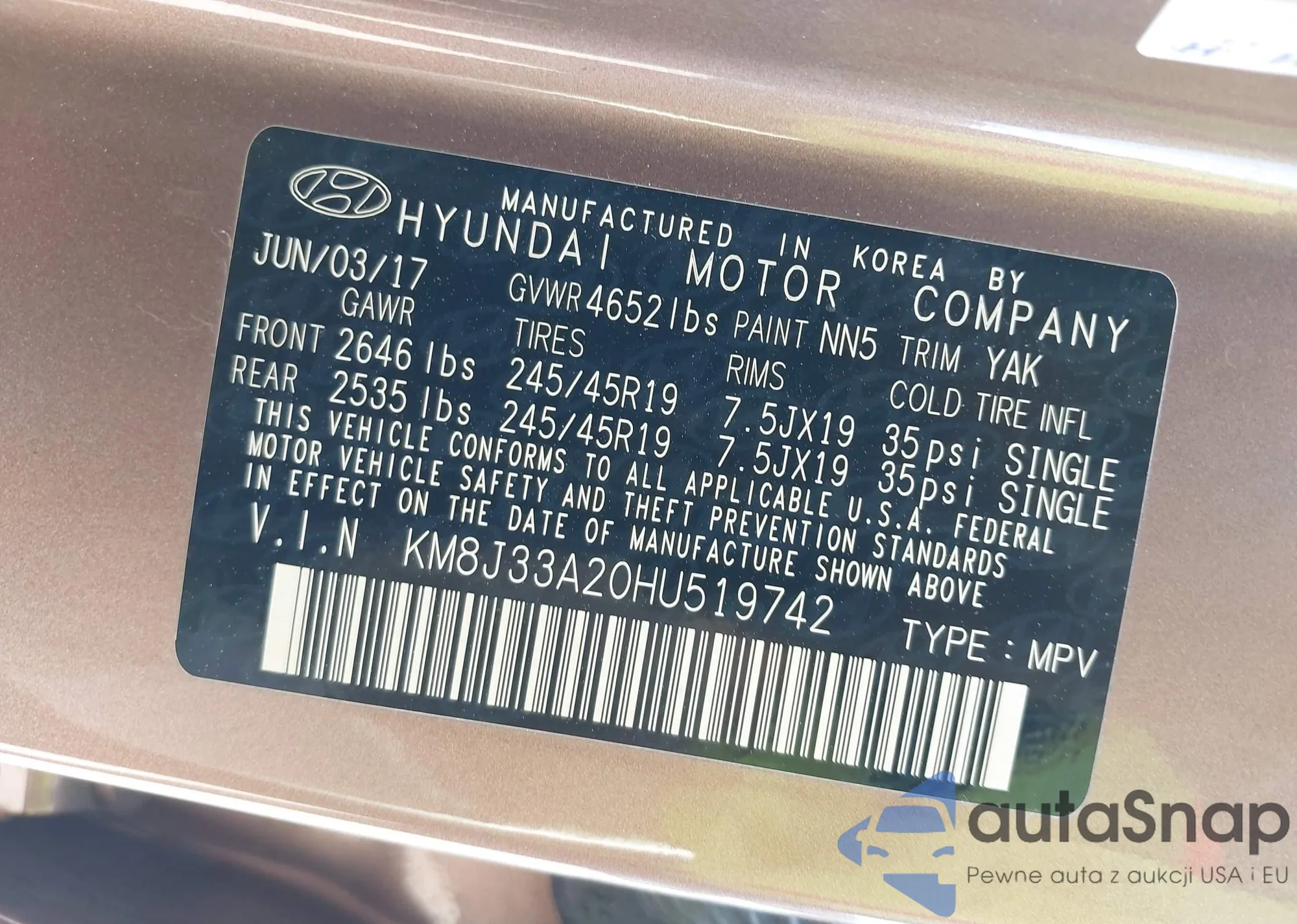 • VIN KM8J33A20HU519742