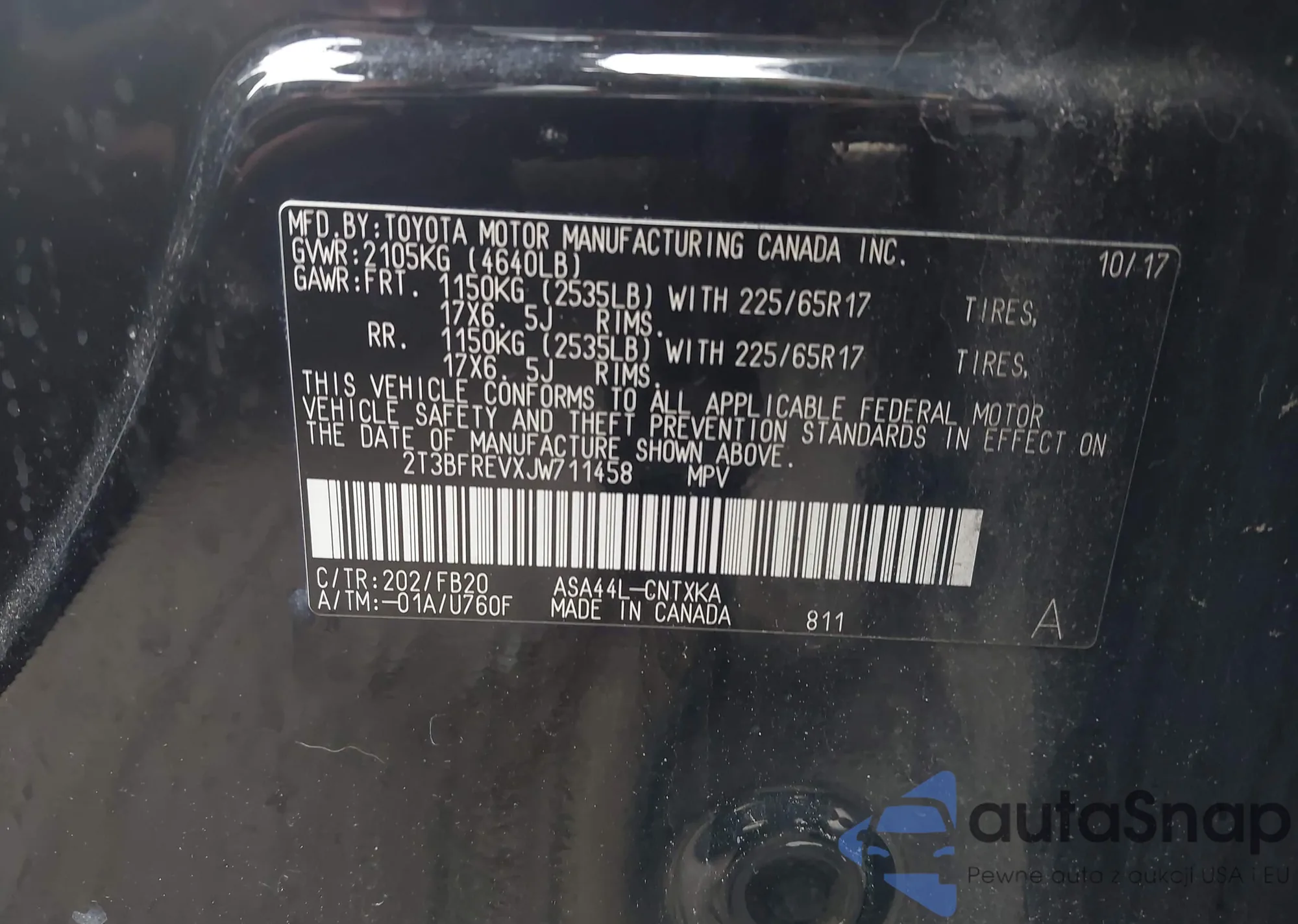 • VIN 2T3BFREVXJW711458