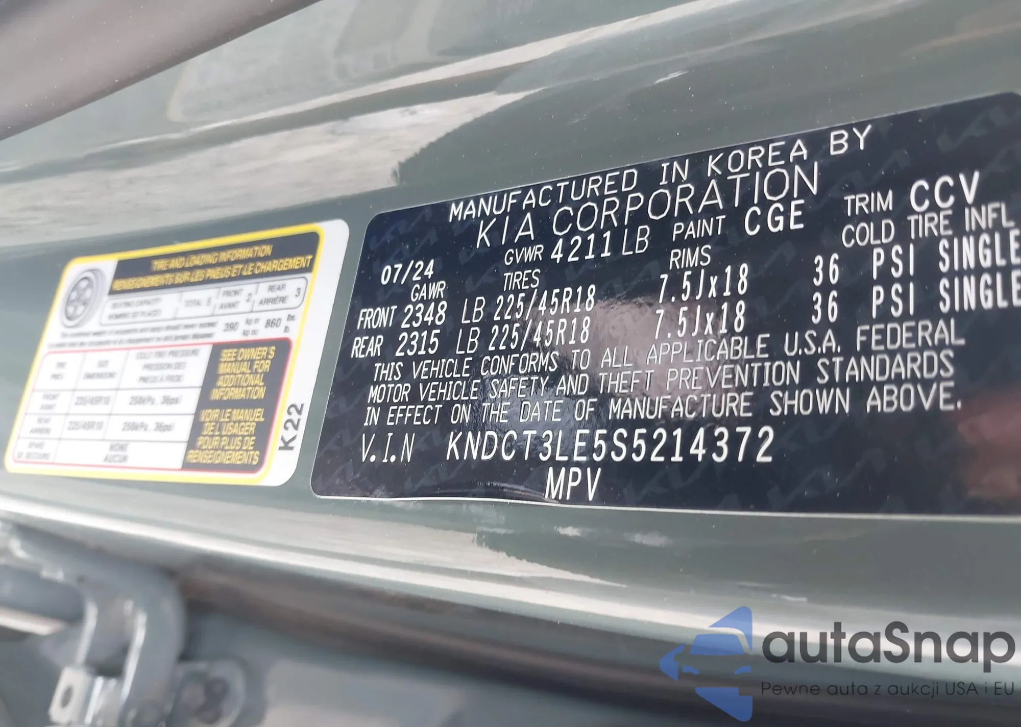 • VIN KNDCT3LE5S5214372