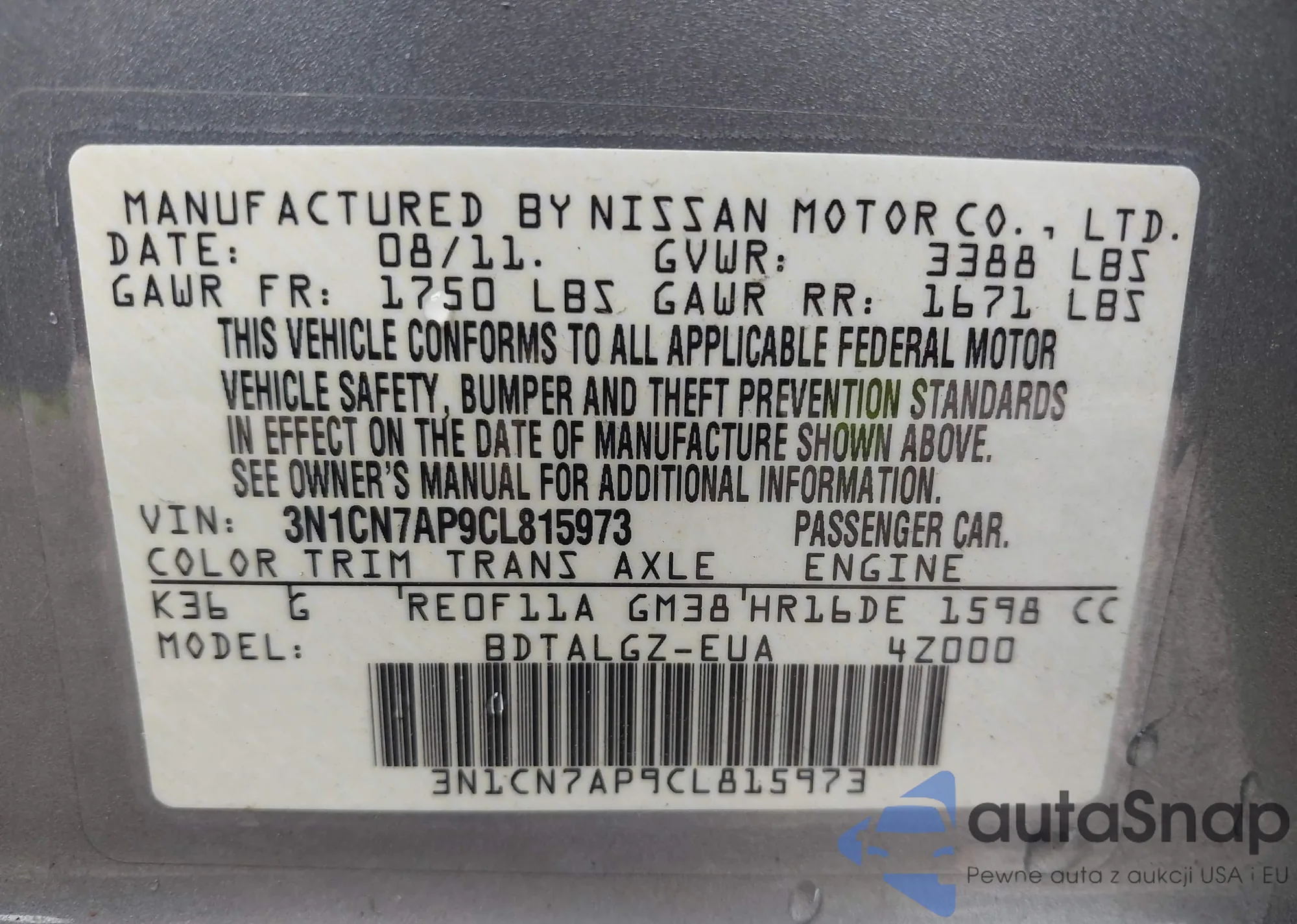 • VIN 3N1CN7AP9CL815973