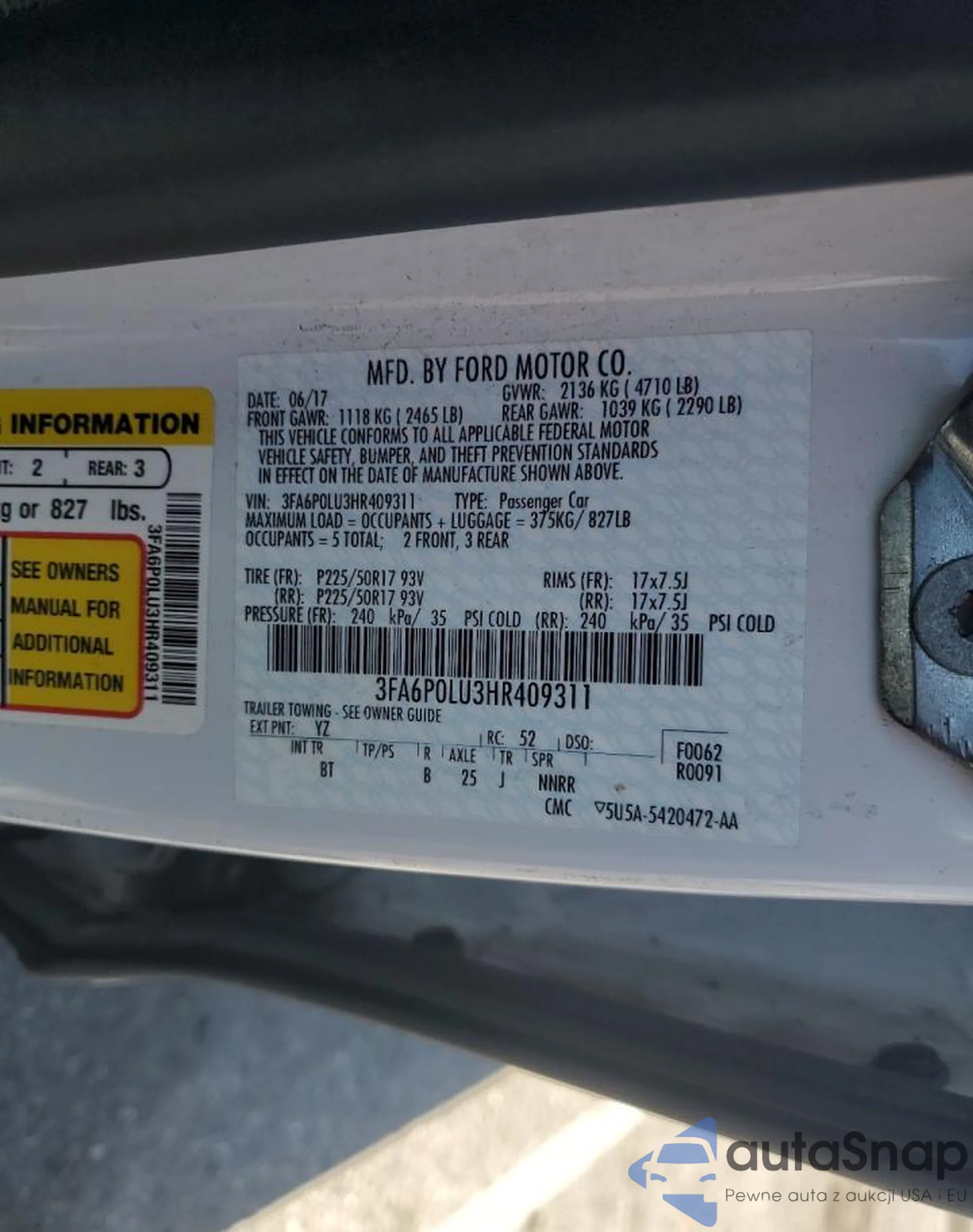 • VIN 3FA6P0LU5HR409312