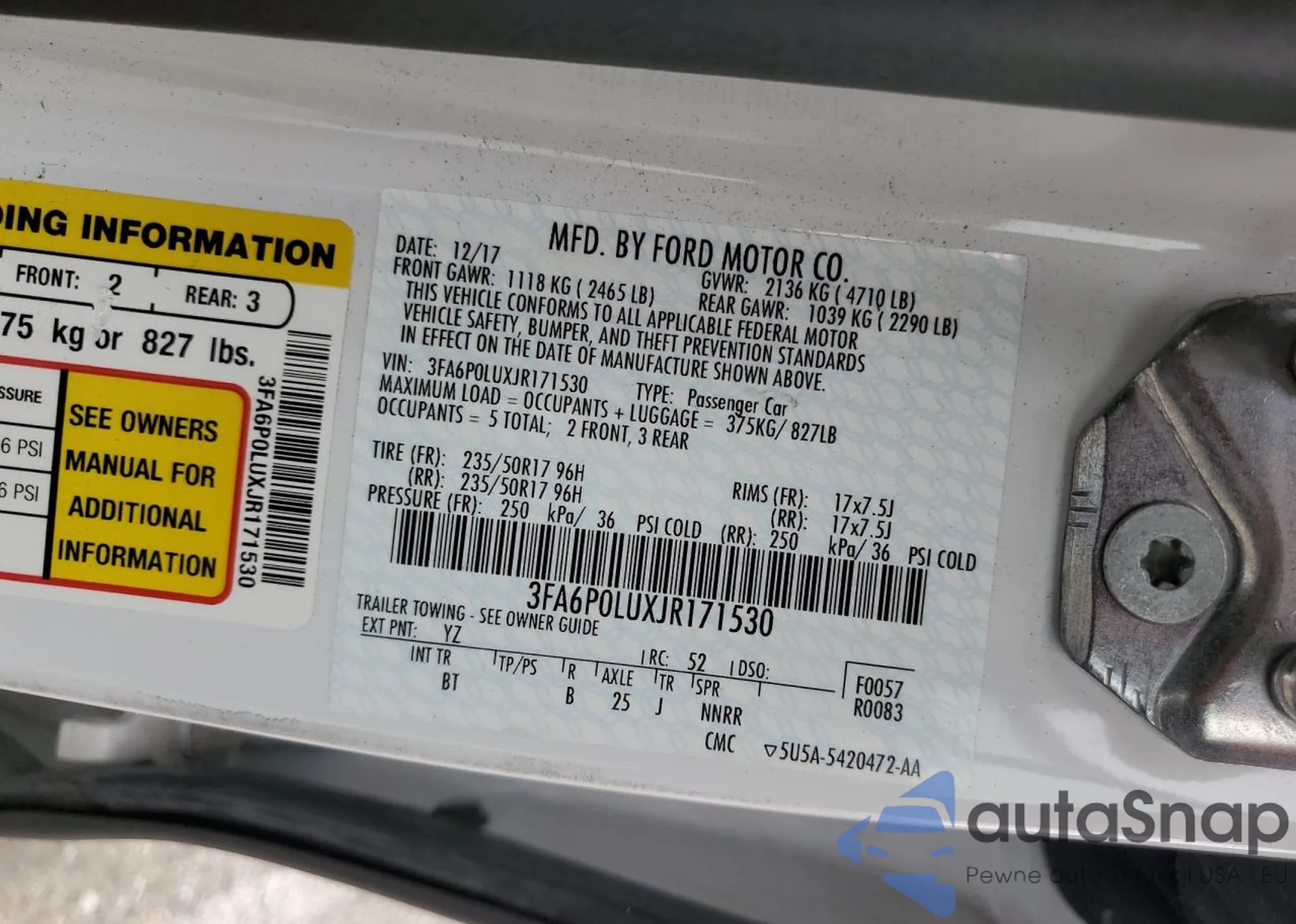 • VIN 3FA6P0LUXJR171530