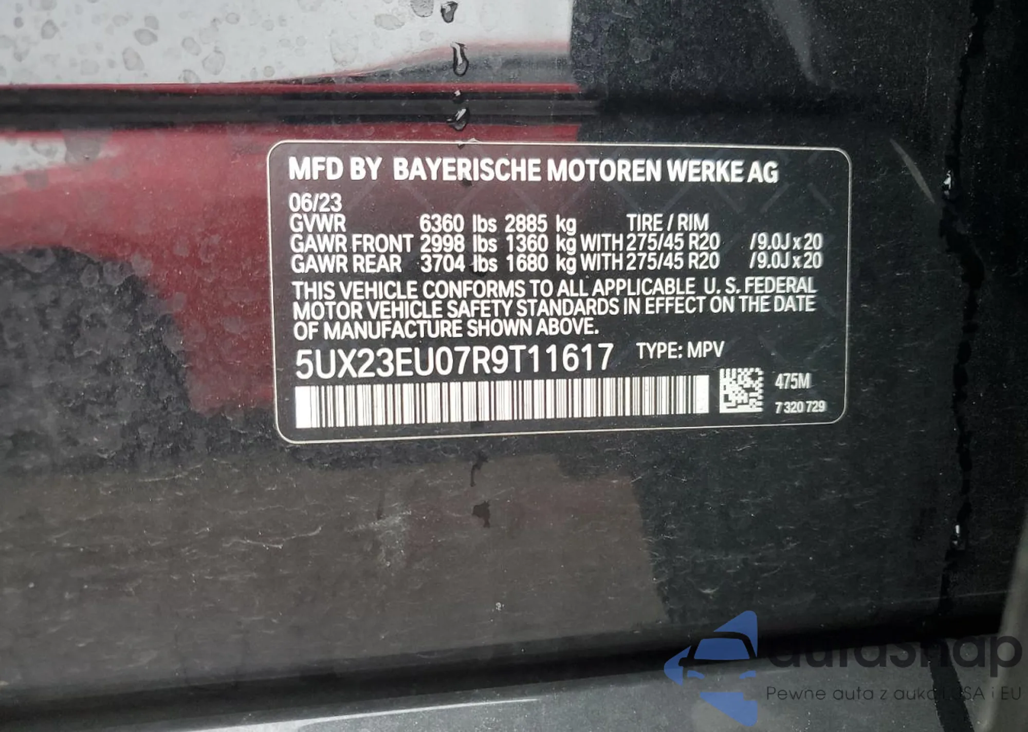 • VIN 5UX23EU07R9T11617