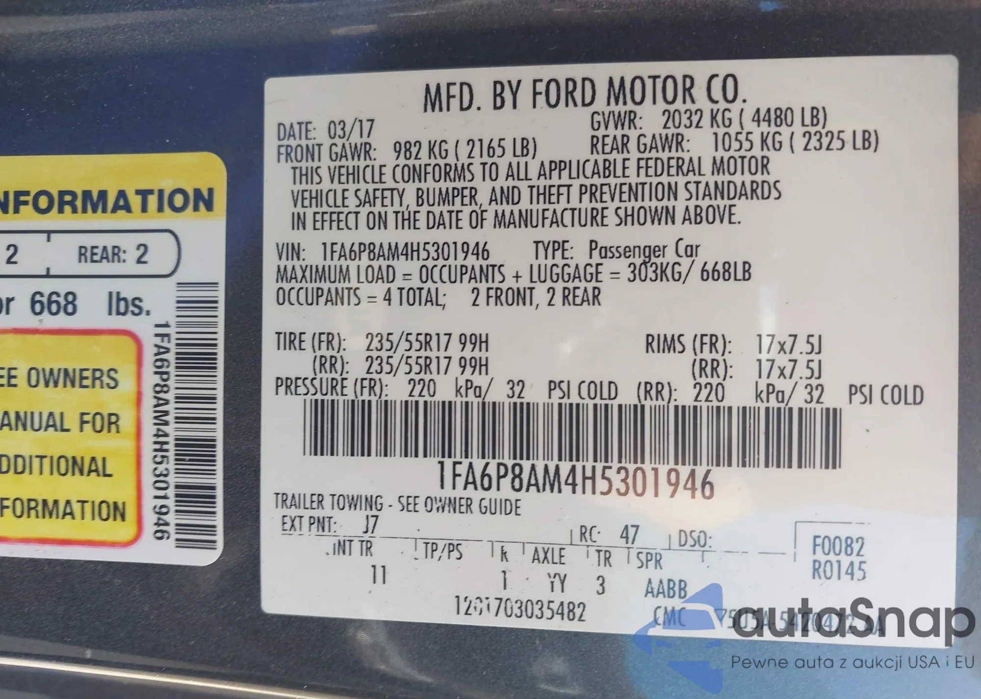 • VIN 1FA6P8AM4H5301946