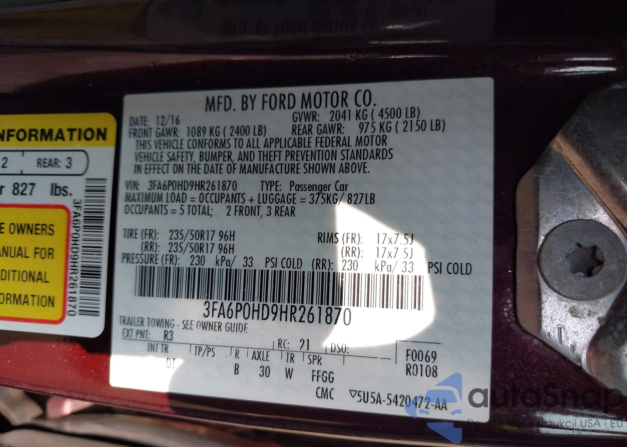 LOT: 42549466 VIN: 1FADP3F22GL231049