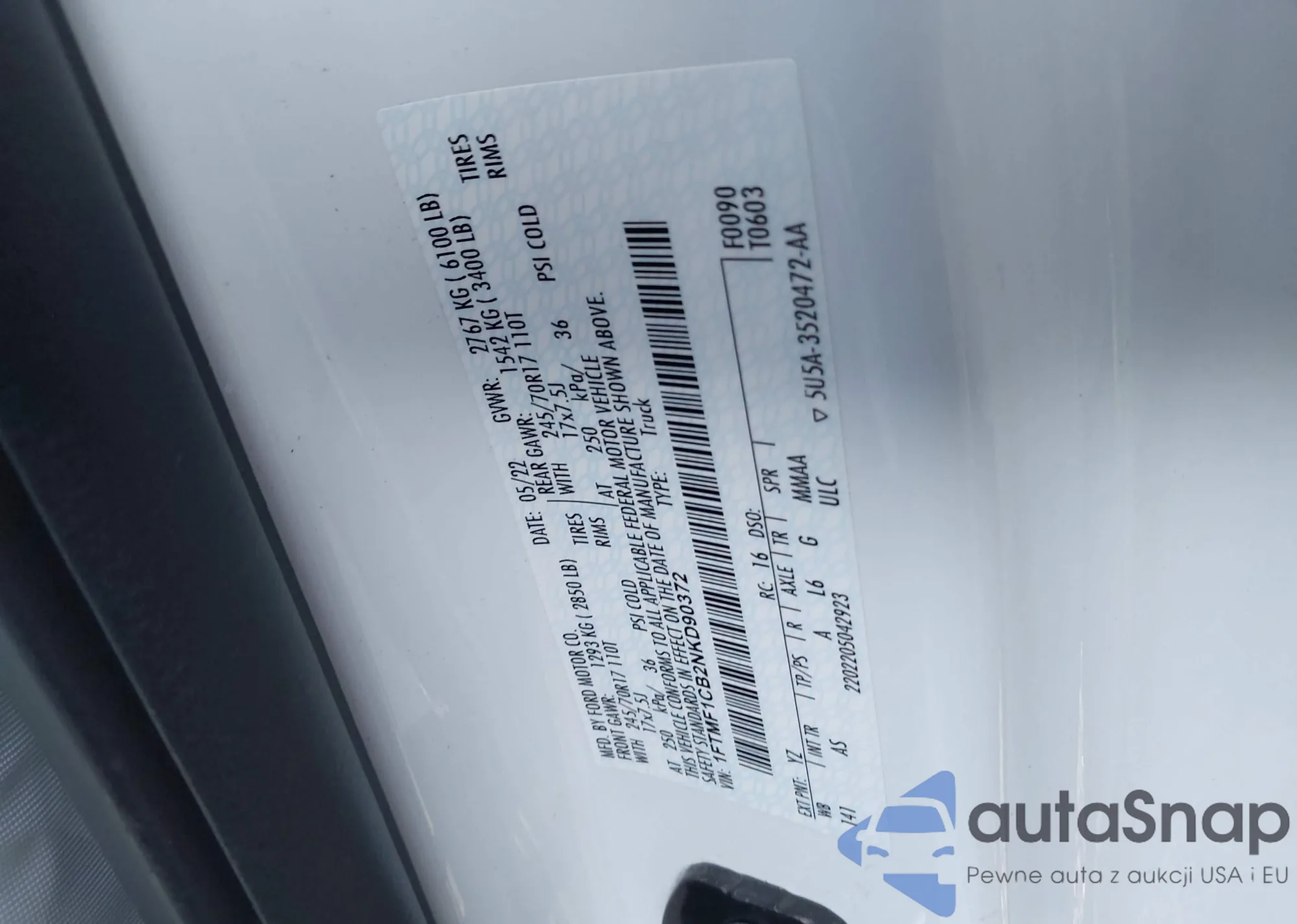 • VIN 1FTNE2EL5BDA70935