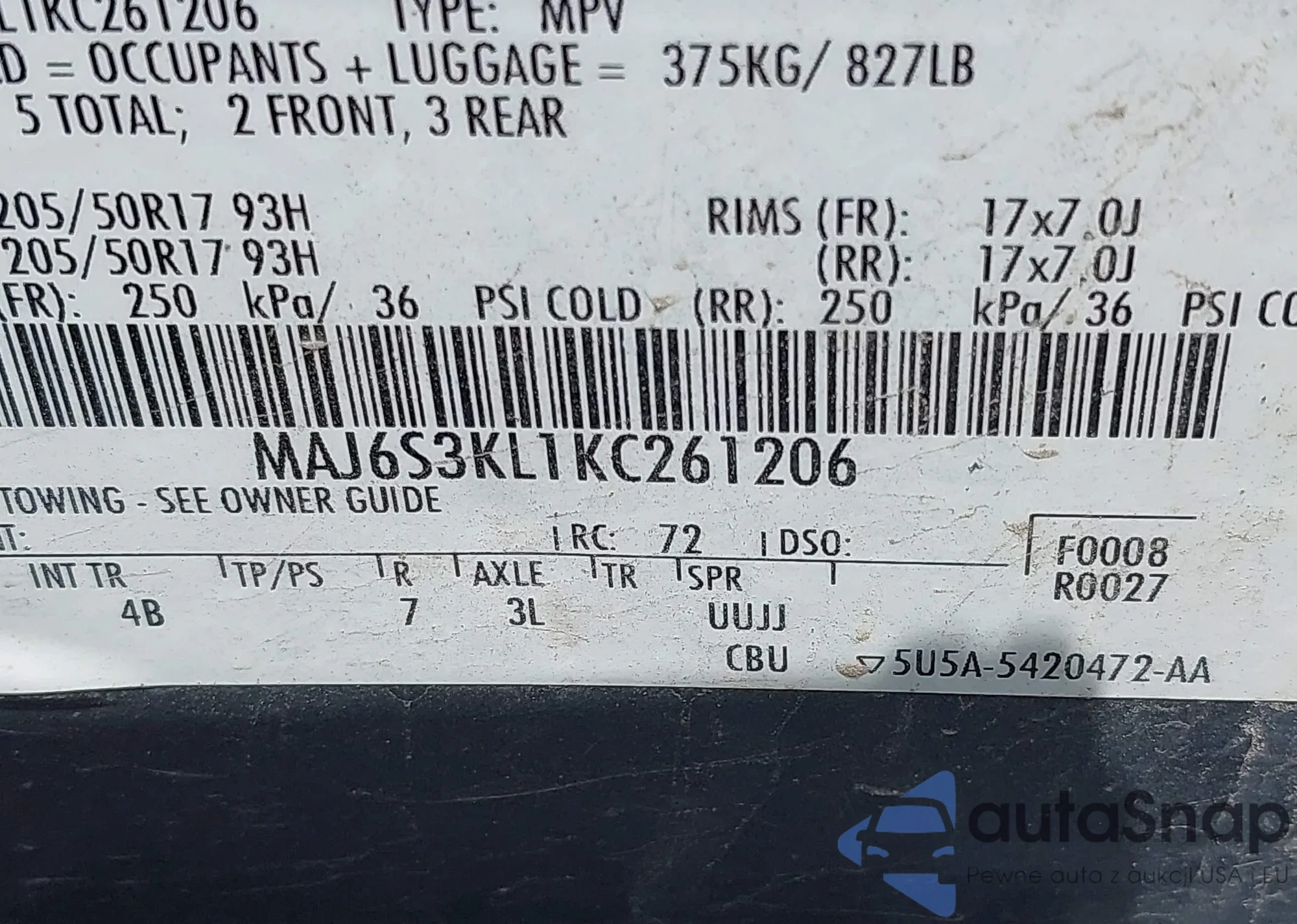 • VIN 3FADP4BJ8EM218353