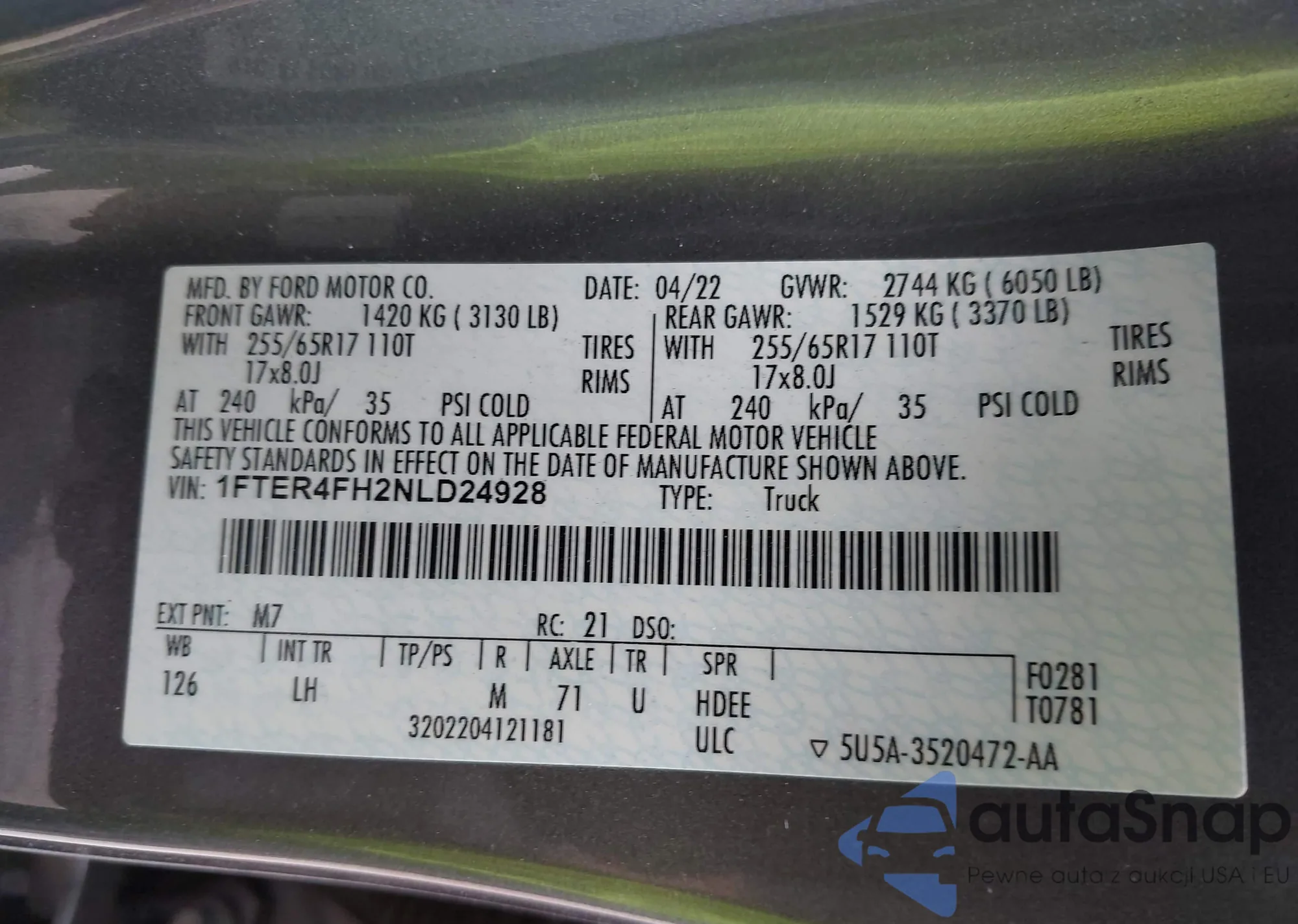 LOT: 42817729 VIN: 1FTER4FH2NLD24928