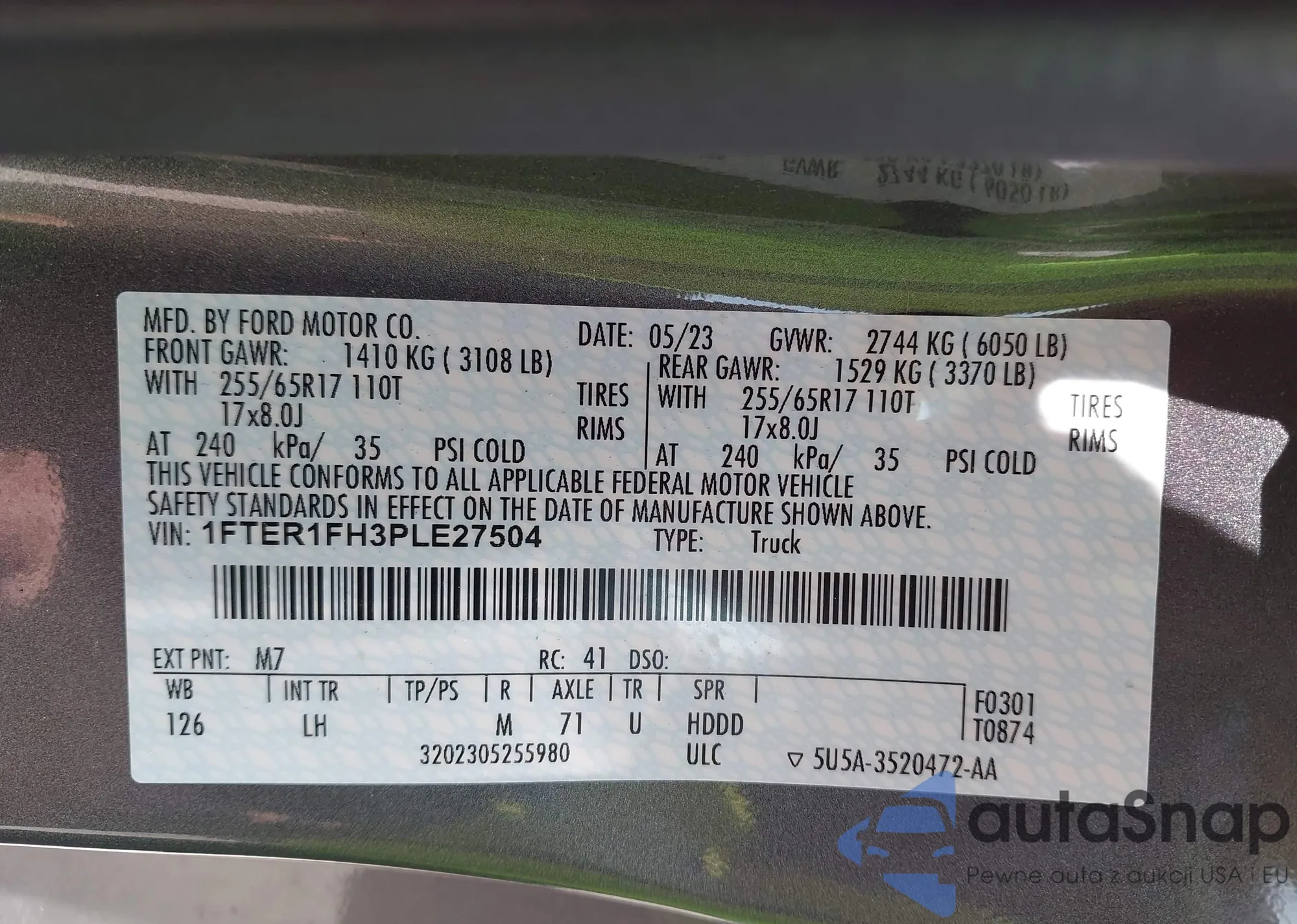 LOT: 42878016 VIN: 1FTER1FH3PLE27504