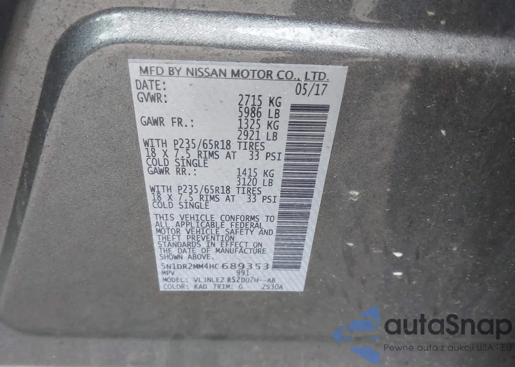 • VIN 5N1DR2MM4HC689353