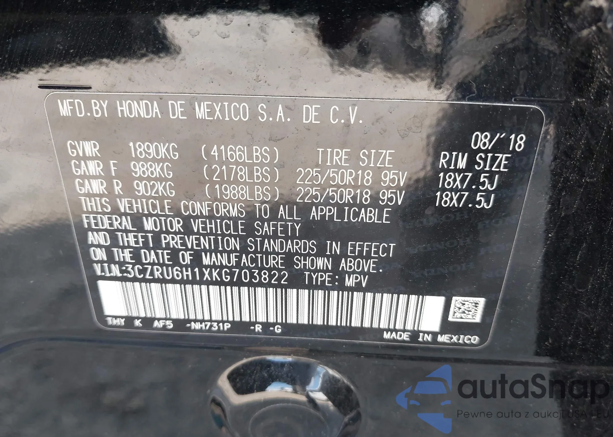 • VIN 3CZRU6H1XKG703822