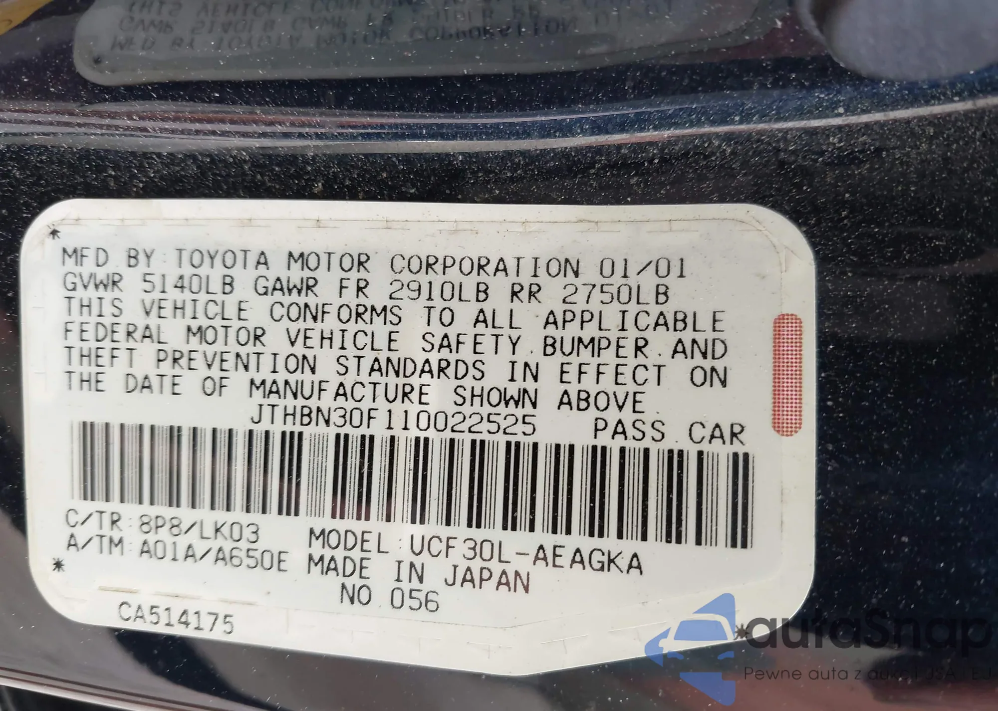 LOT: 43286845 VIN: JTHBN30F110022525