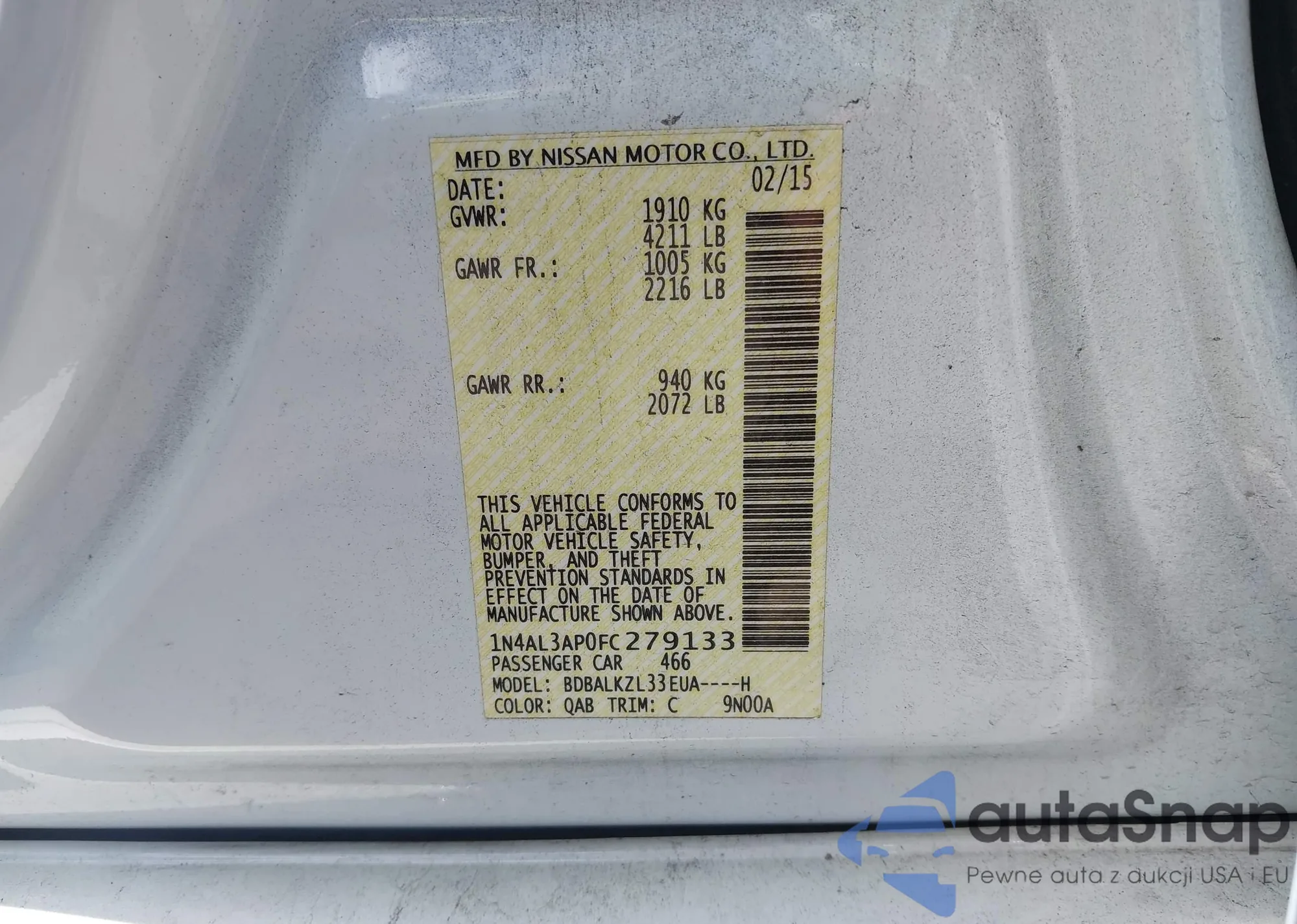 LOT: 43319157 VIN: 1N4AL3AP0FC279133