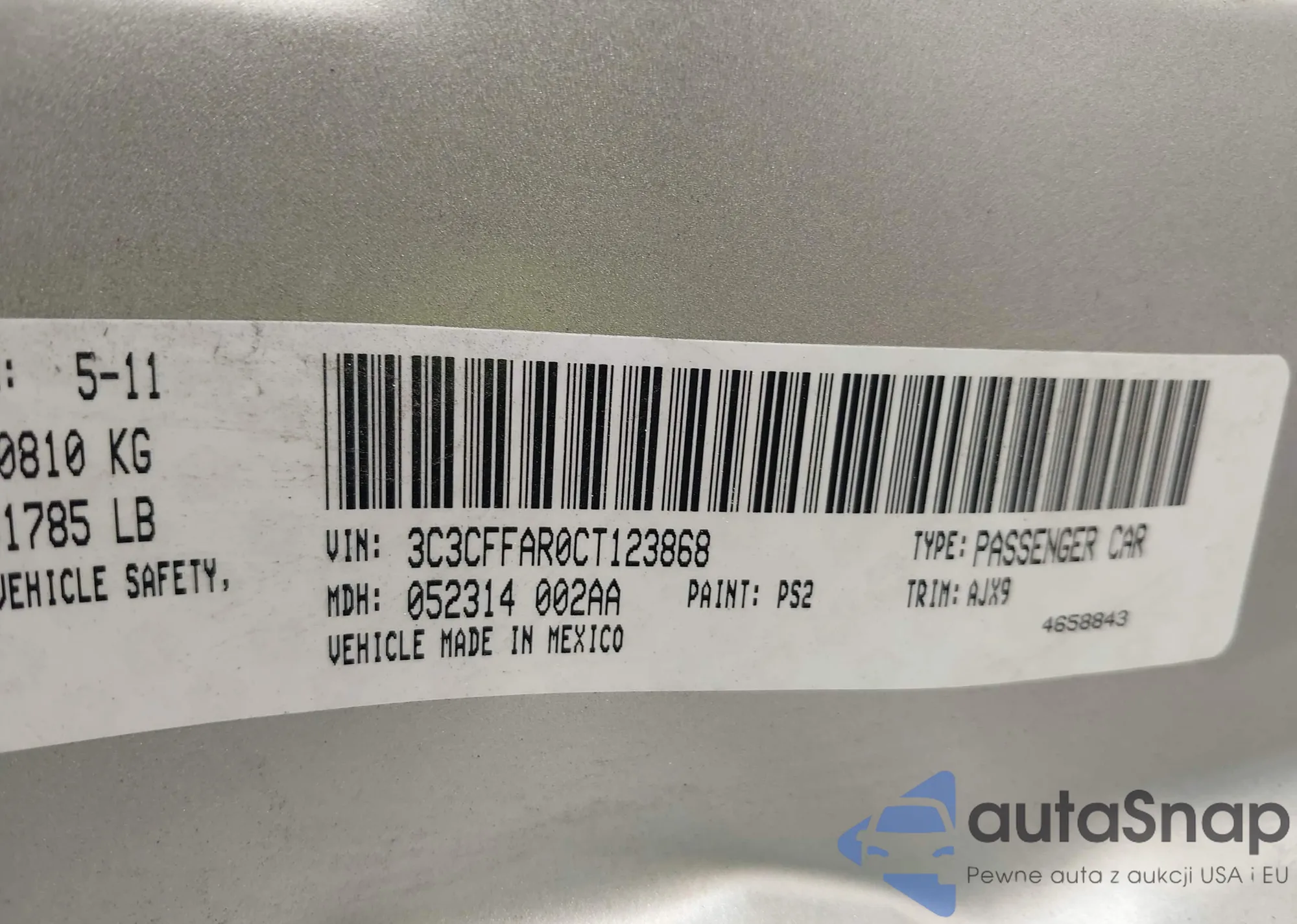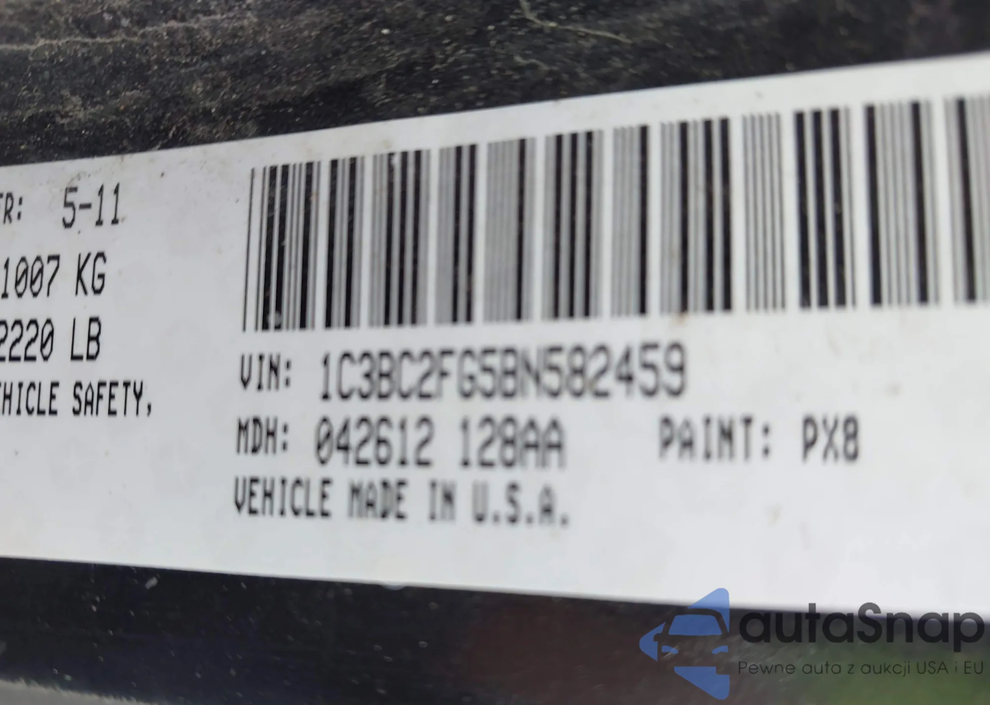 LOT: 43309578 VIN: 1C3BC2FG5BN582459