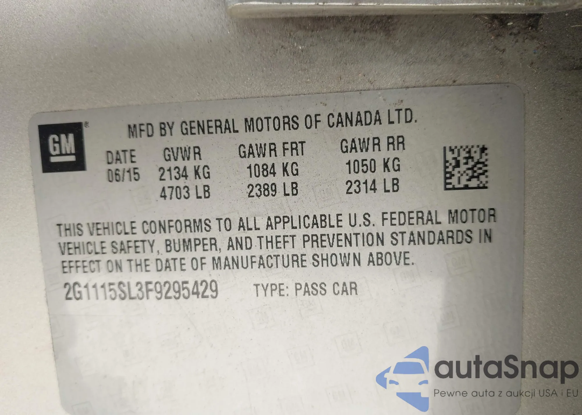 2015 Nissan Altima 2.5 S z USA, uszkodzony, nr VIN 1N4AL3AP6FN329652