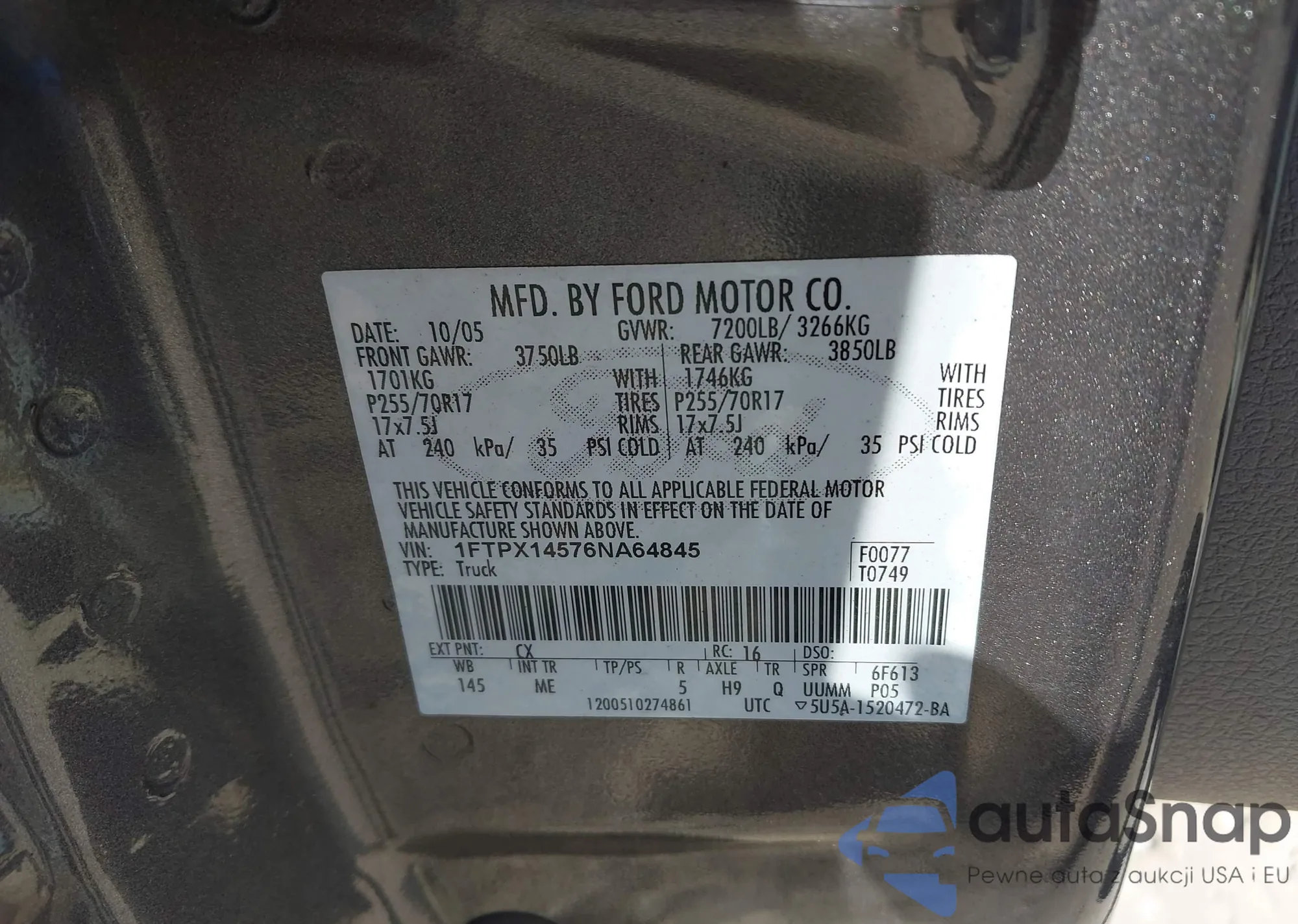 • VIN 1FTPX14576NA64845