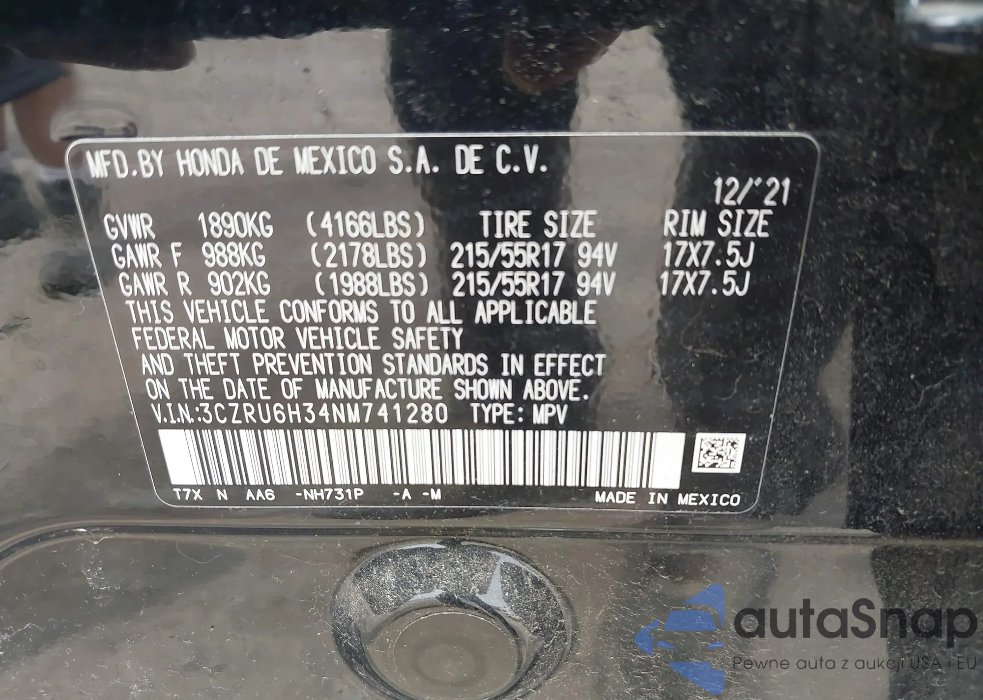 • VIN 3CZRU6H34NM741280