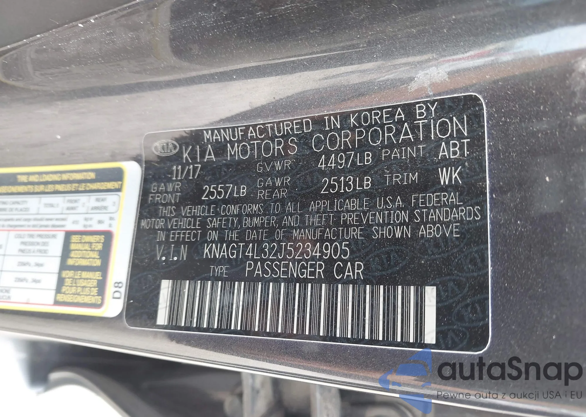 • VIN KNAGT4L32J5234905