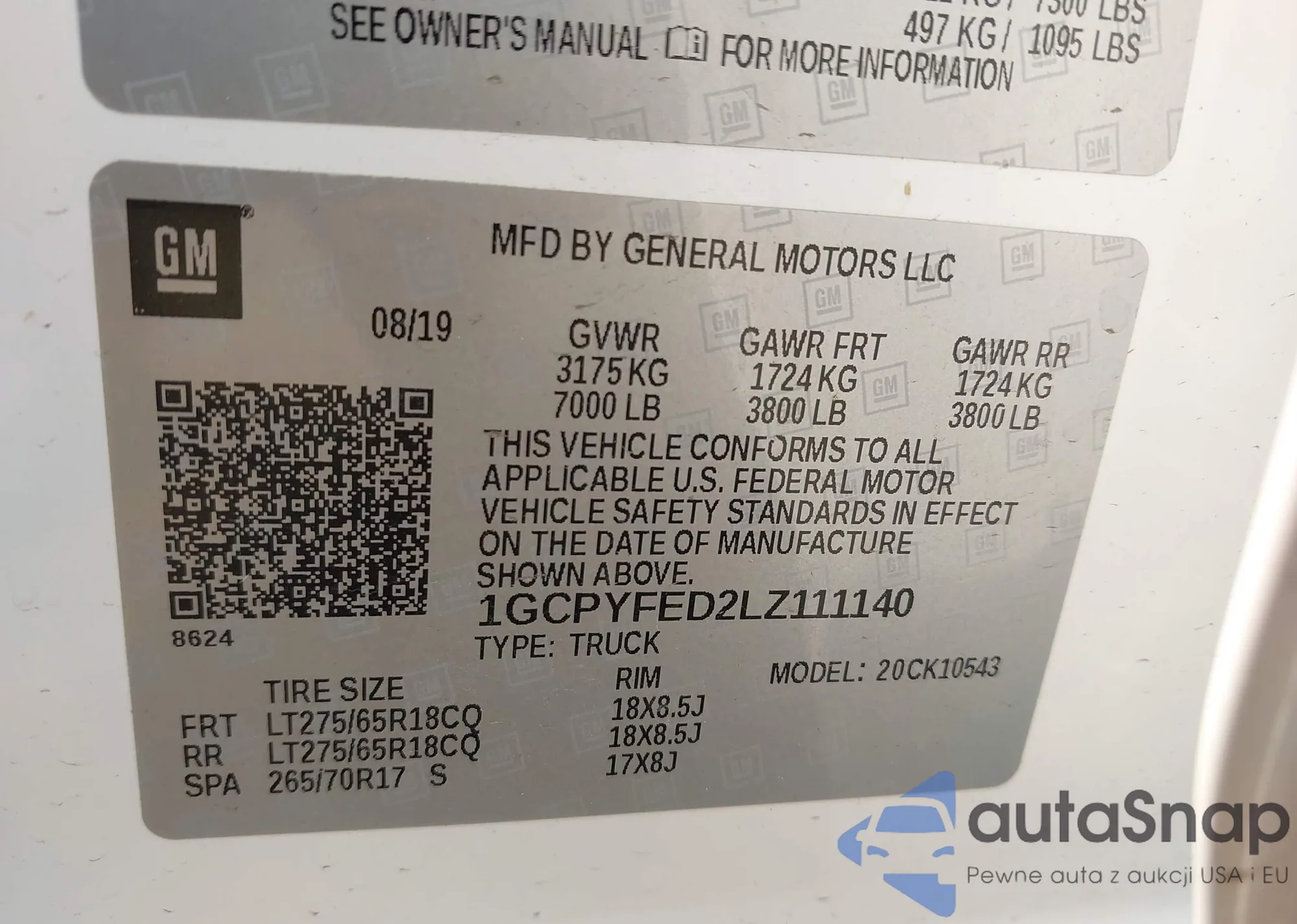 LOT: 43152954 VIN: 1GCPYFED2LZ111140