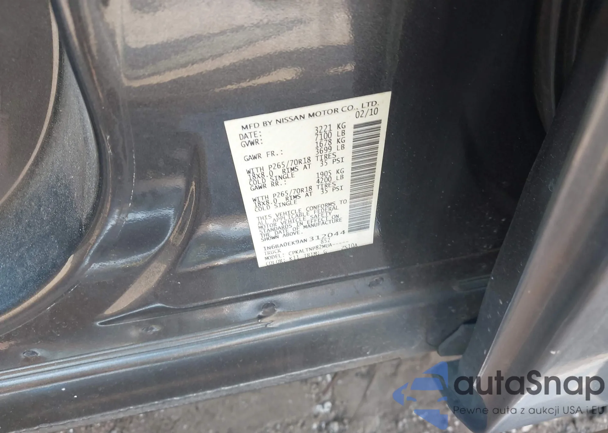 • VIN 1N6BA0EK9AN312044